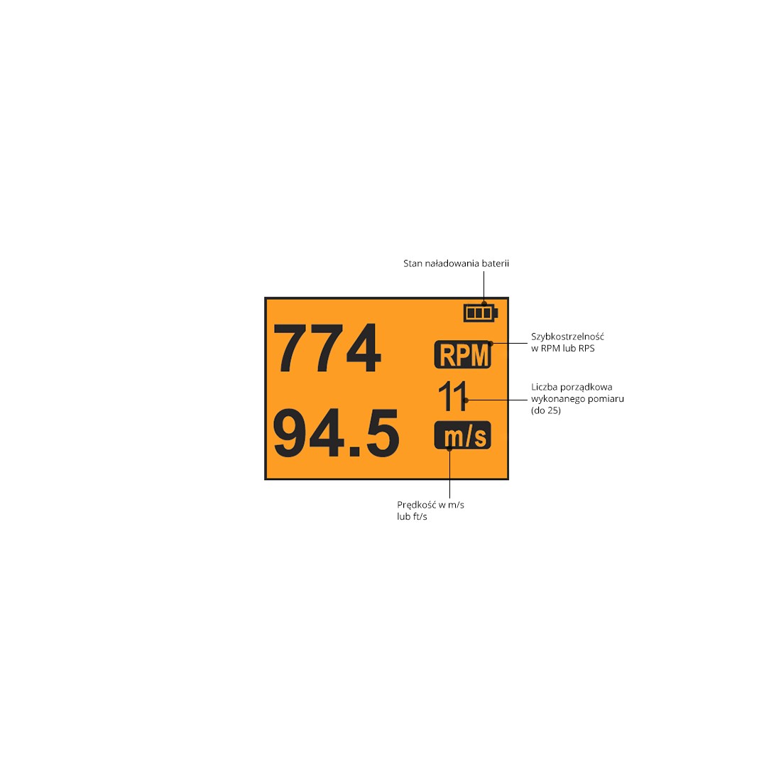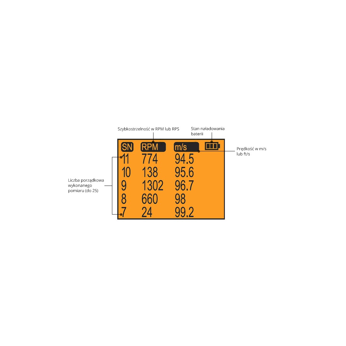- Pomiar szybkostrzelności [RPM]: do 5000