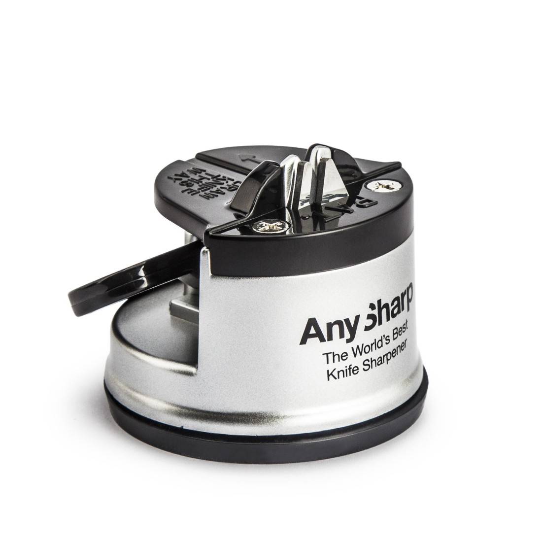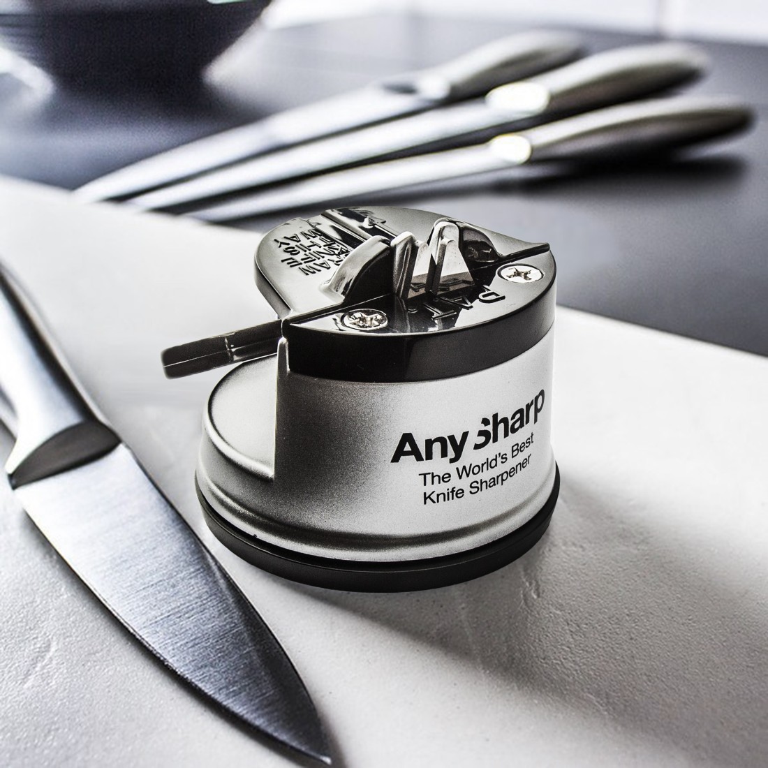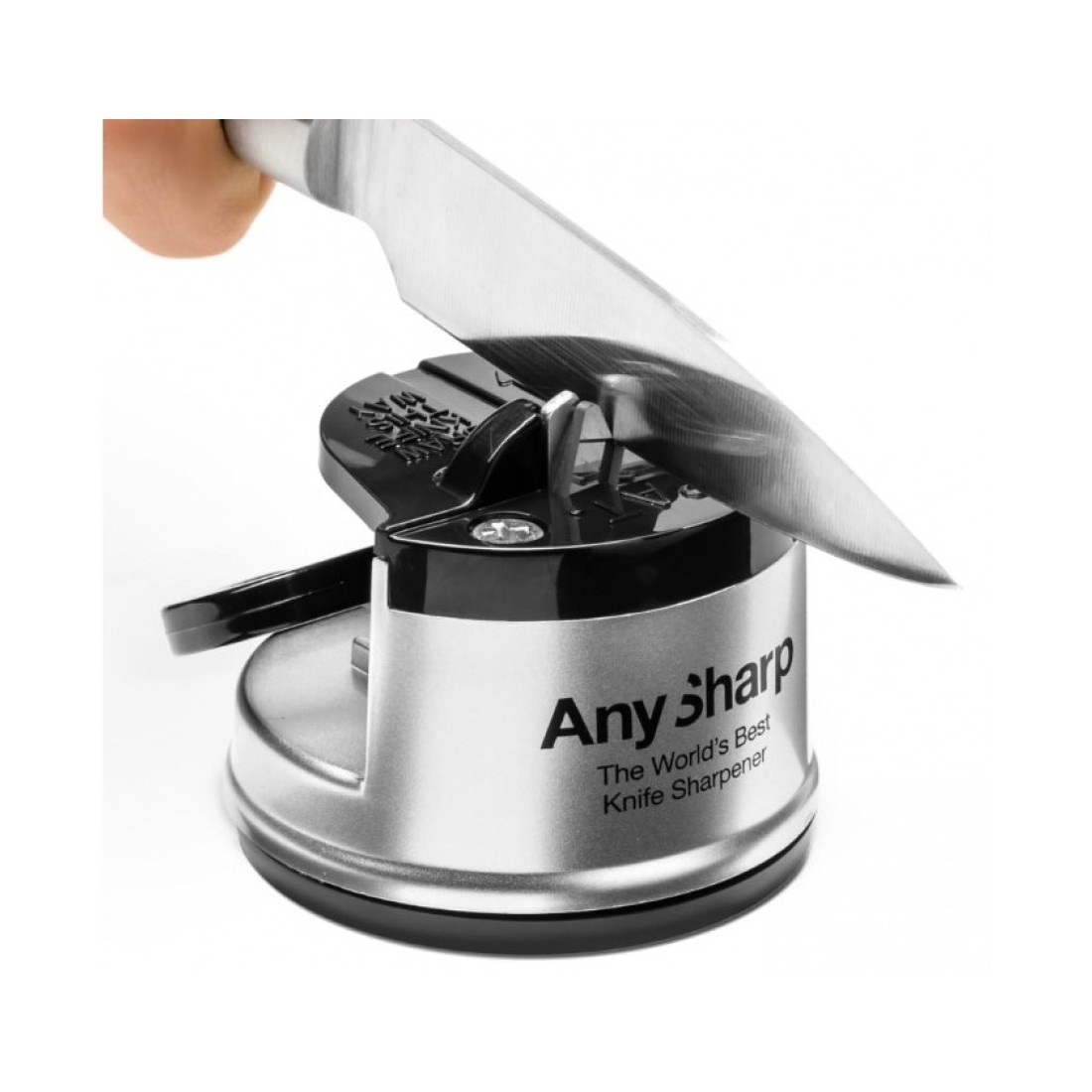 AnySharp classic srebrna to jedna z najbardziej uniwersalnych ostrzałek na świecie, umożliwiająca ostrzenie noży z ostrzami gładkimi oraz ząbkowanymi.