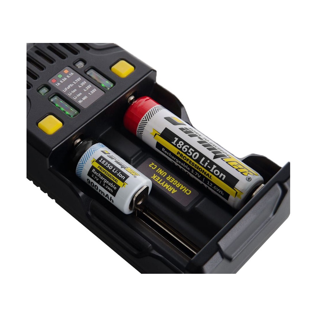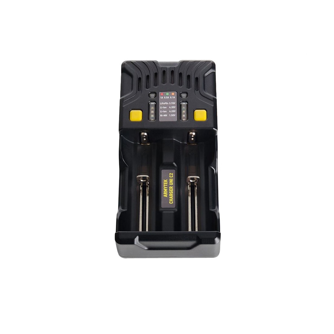 Armytek UNI C2 to zaawansowana ładowarka stacjonarna, samochodowa z wbudowanym zasilaczem. Została zaprojektowana do ładowania różnych typów baterii. Ładowarka mikroprocesorowa UNI C2 daje możliwość ładowania dwóch ogniw jednocześnie.