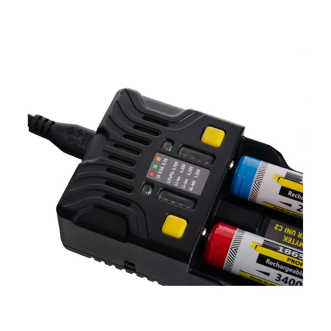- Możliwość ładowania akumulatorów Ni-Mh (AA, AAA. AAAA) i Li- Ion 4,2V, Li-Ion 4,35V, Li-FePO4