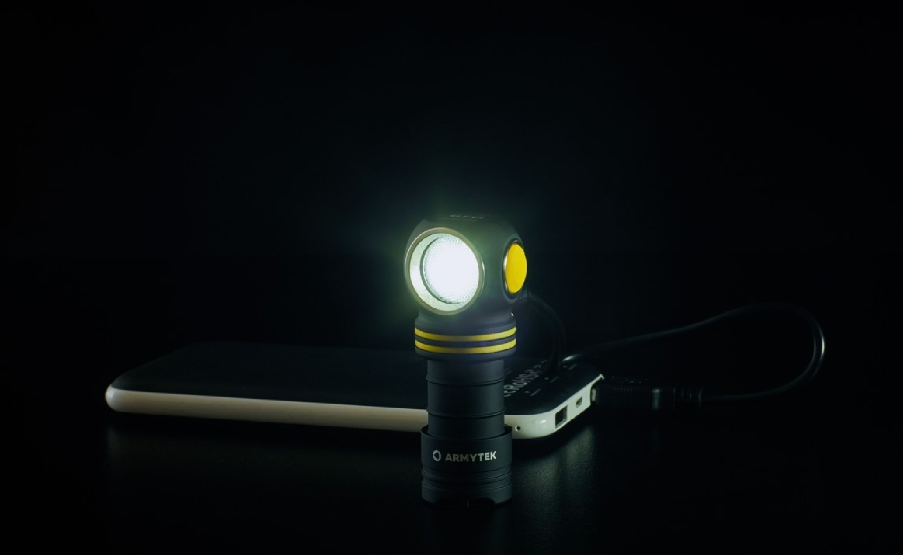 Latarka może pracować również w trybie lampy — ze źródła zasilania z wyjściem USB i bez baterii w środku.