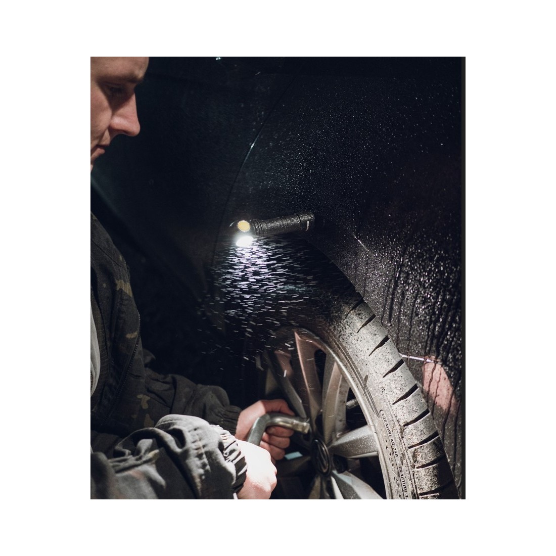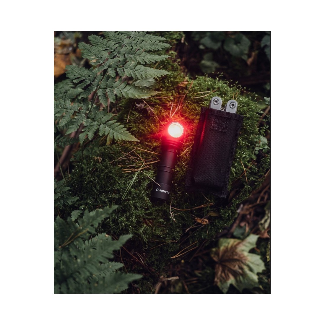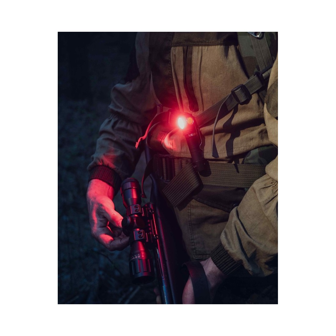 Dodatkowe czerwone światło o mocy 230 lumenów jest skuteczne w mglistych lub w warunkach ograniczonej widoczności. Może być również używany jako tylny wskaźnik rowerowy lub migające światło ostrzegawcze. Latarkę docenią wędkarze i myśliwi: czerwone światło nie wystraszy zwierzęcia ani ryby. Wizard C2 WR ma również dodatkową zaletę na zewnątrz — pozwala na używanie latarki bez przyciągania natrętnych owadów.