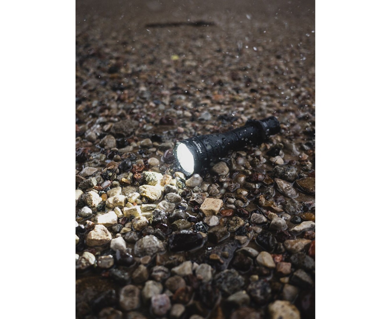 Konstrukcja została poddawana wymagającym testom na miażdżenie, upadki, mrożenie, przegrzanie i topienie. Odporna na czynniki zewnętrzne i uszkodzenia mechaniczne. Latarka jest całkowicie odporna na penetrację kurzu i ciał stałych - IP68, wodoodporna w zanurzeniu do 25m na 5h (nadaje się do nurkowania). Latarka jest odporna na upadki z wysokości 25m.