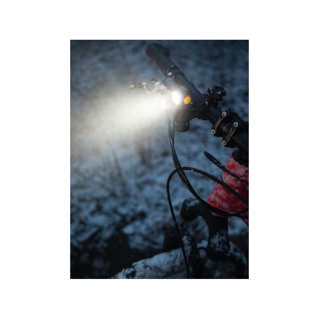 Strumień świetlny do 1000 lumenów i zasięg światła do 100 metrów: jasność lampy jest tylko nieznacznie gorsza od charakterystyk większych modeli. Główną różnicą jest żywotność baterii - imponujące w stosunku do swojego rozmiaru miesiące na jednej baterii.