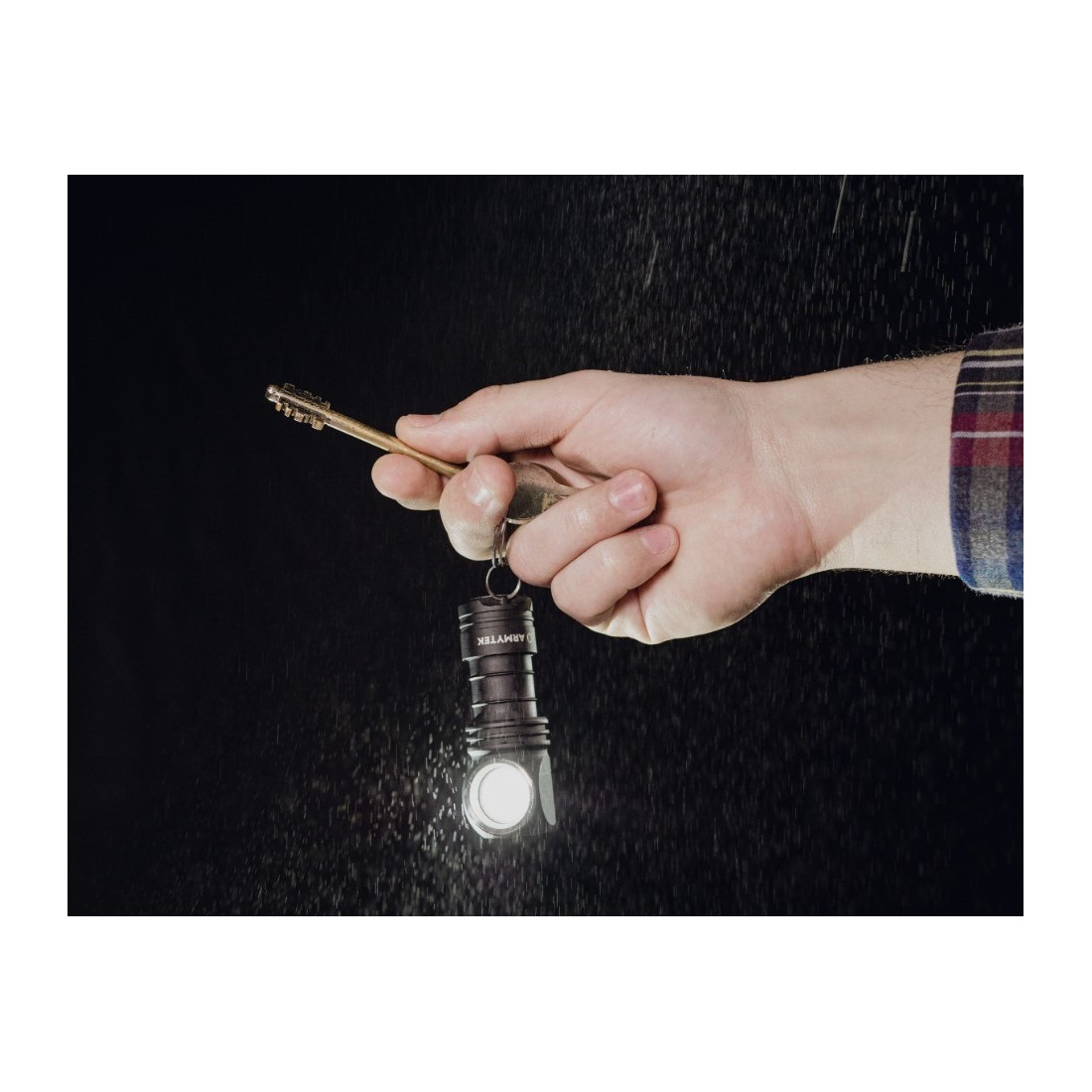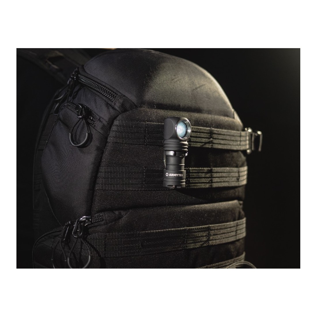 Wizard C1 Pro montuje się na metalowych powierzchniach za pomocą silnego magnesu w tylnej obudowie, mocuje się solidnie w zaczepie i pasuje do każdego ubrania, paska lub torby za pomocą klipsa. Dodatkowo tylna obudowa latarki posiada otwór na pasek lub brelok do kluczy.