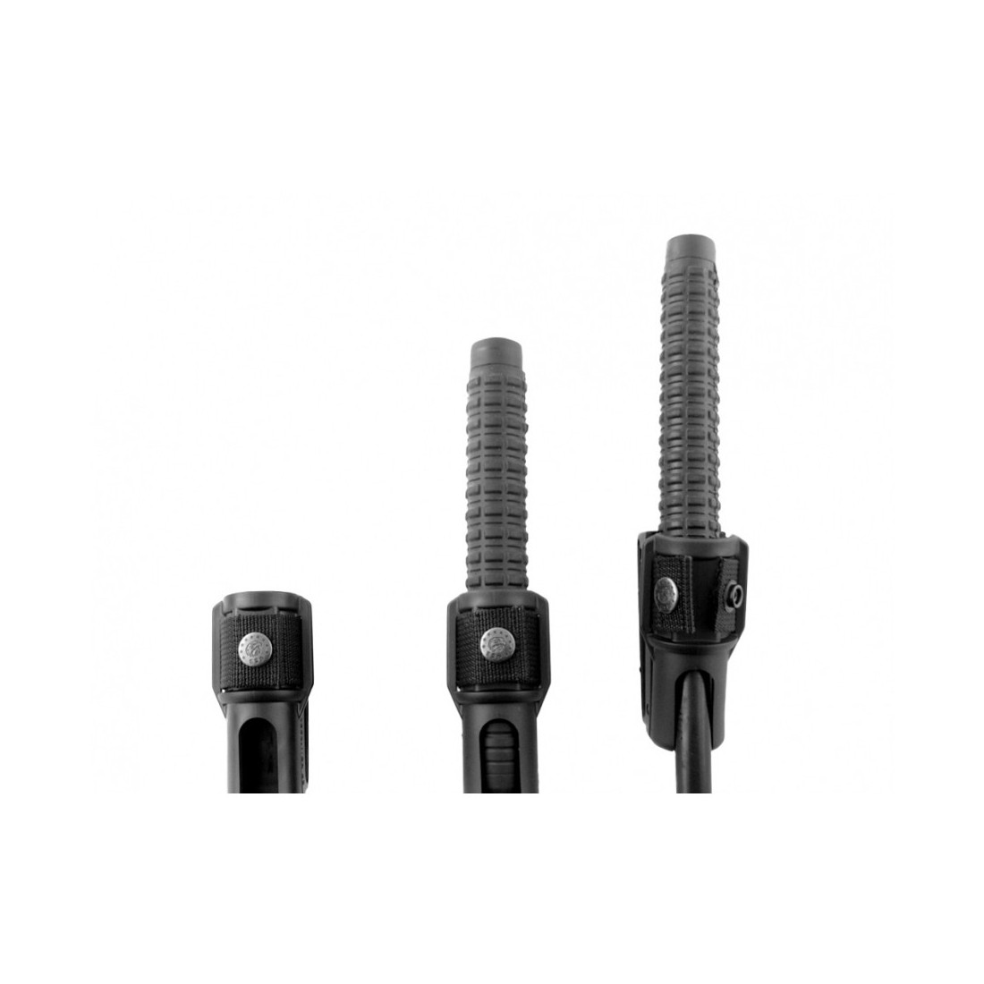 Rękojeść z elastycznego tworzywa o antypoślizgowej fakturze uniemożliwia odebranie pałki przez napastnika. Kabura z otworem na pas umożliwia przenoszenie w stanie złożonym, lub rozłożonym.