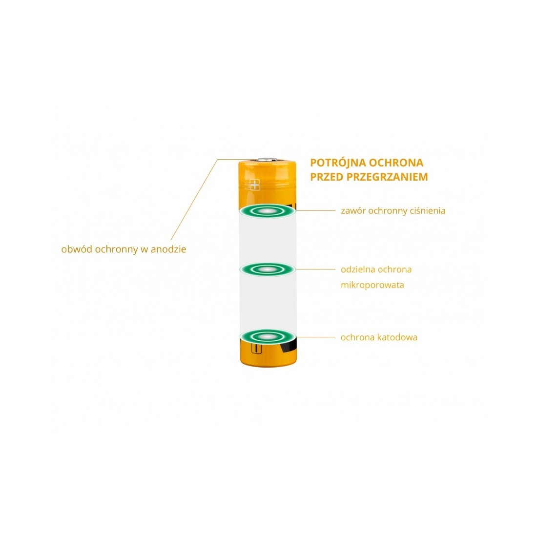 Producent zastosował wielopoziomowy system zabezpieczeń, który w maksymalnym stopniu wydłuża żywotność i zapewnia najwyższy poziom bezpieczeństwa akumulatora.
