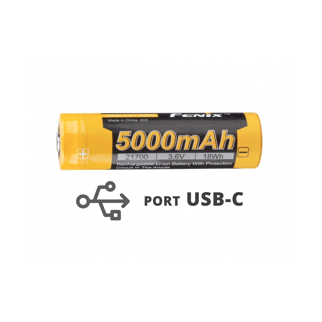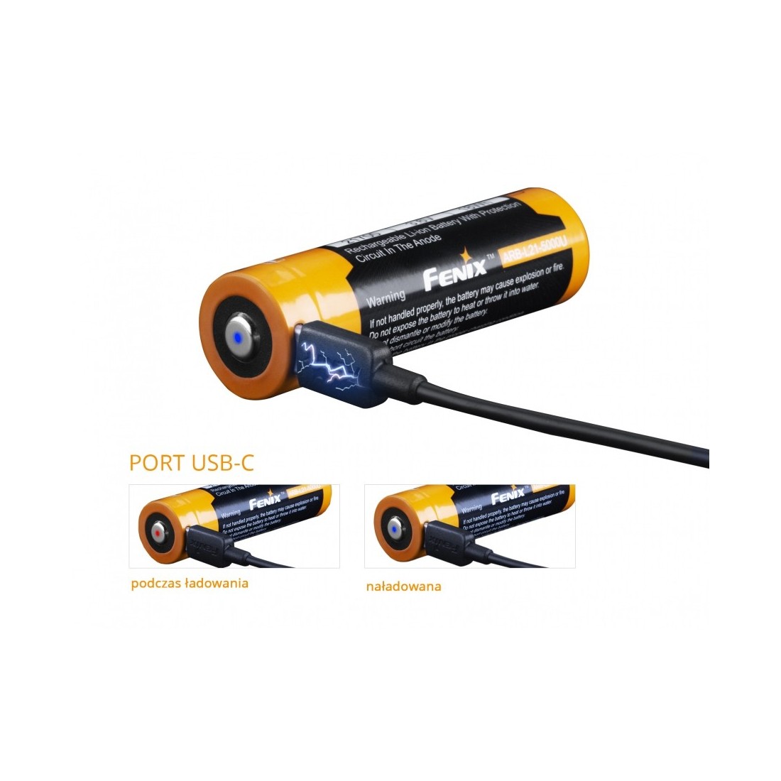Fenix ARB-L21-5000U to wysokiej jakości akumulator litowo-jonowy typu 21700 o imponującej pojemności 5000 mAh wyposażony w innowacyjny system ładowania za pomocą portu USB-C.