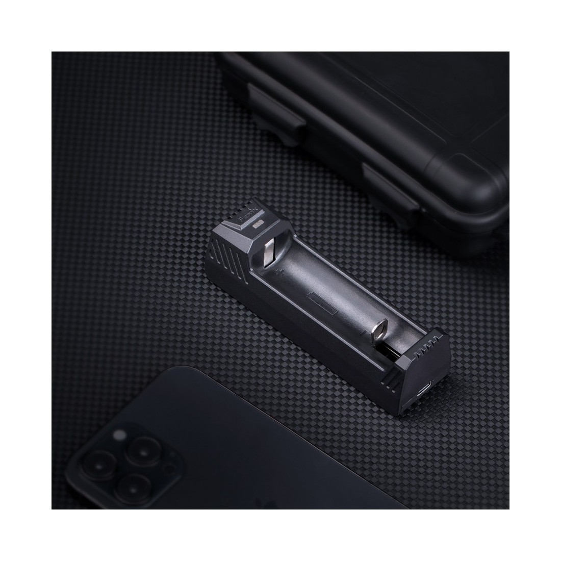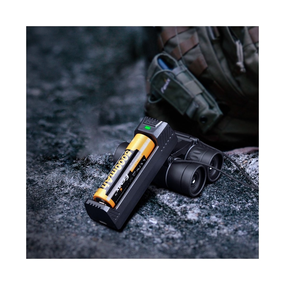 Fenix ARE-X1 V2.0 to jednokanałowa ładowarka mikroprocesorowa USB-C z funkcją power banku, dzięki, której prawidłowo, szybko i bezpiecznie naładujemy różnego rodzaju akumulatory 18650, 21700, 26650.