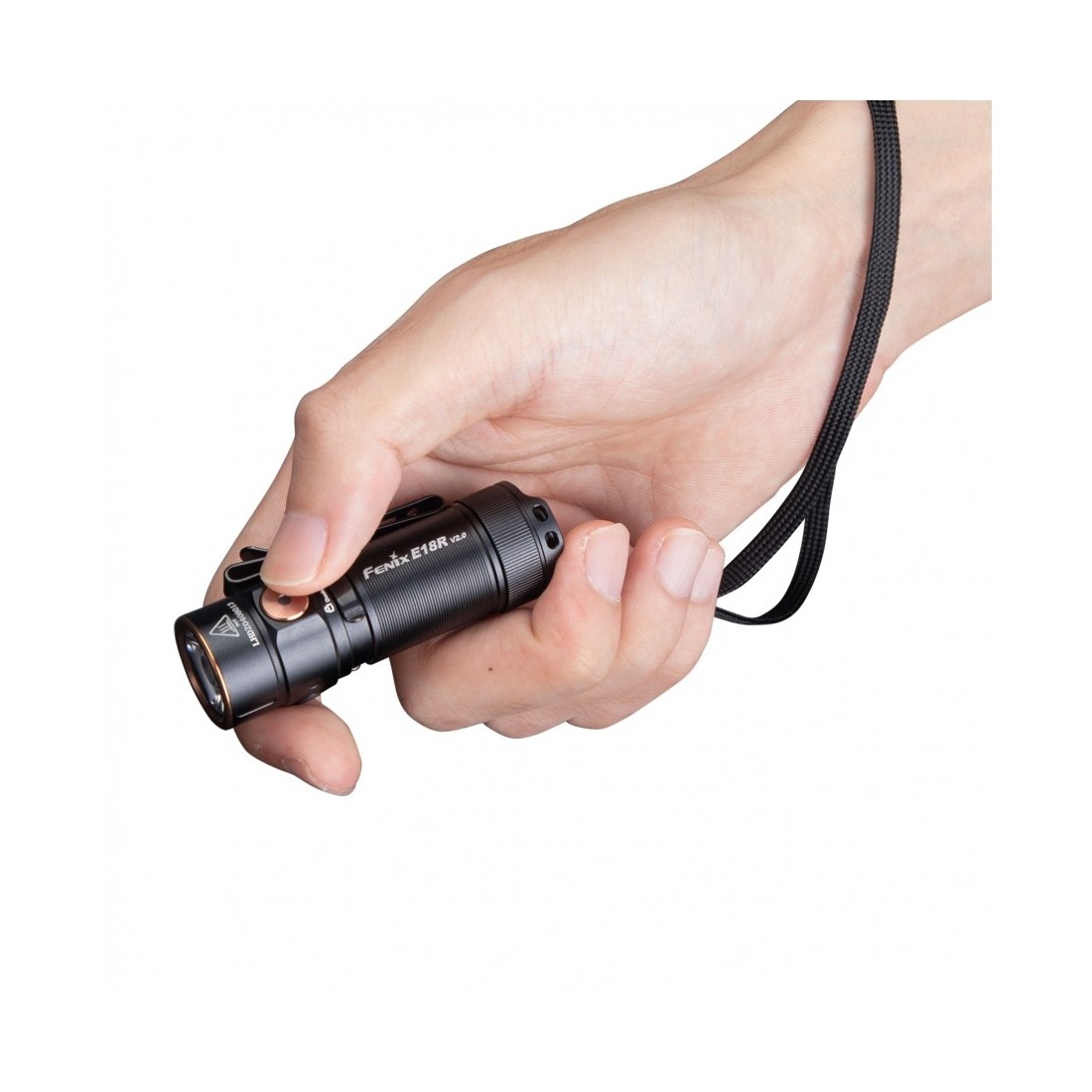 W nowej wersji E18R V2.0 zastosowano diodę o chłodnej barwie, zmodyfikowaną soczewkę kolimacyjną oraz reflektor orange peel. Taki układ optyczny sprawia, że strumień światła jest równomiernie rozproszony, dlatego Fenix E18R V2.0 idealnie sprawdzi się jako latarka edc, oświetlenie w każdej formie aktywności outdoorowej.