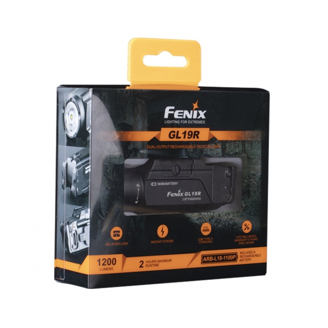 Fenix GL19R to kolejna latarka taktyczna w ofercie marki Fenix zaprojektowaną z myślą o użytkownikach broni krótkiej. Dzięki dwóm adapterom szynowym latarka pasuje do większości pełnowymiarowych pistoletów z szyną Glock lub MIL-STD-1913. Lekka niskoprofilowa konstrukcja sprawia, że Fenix GL19R może być z powodzeniem stosowana podczas skrytego przenoszenia broni.
