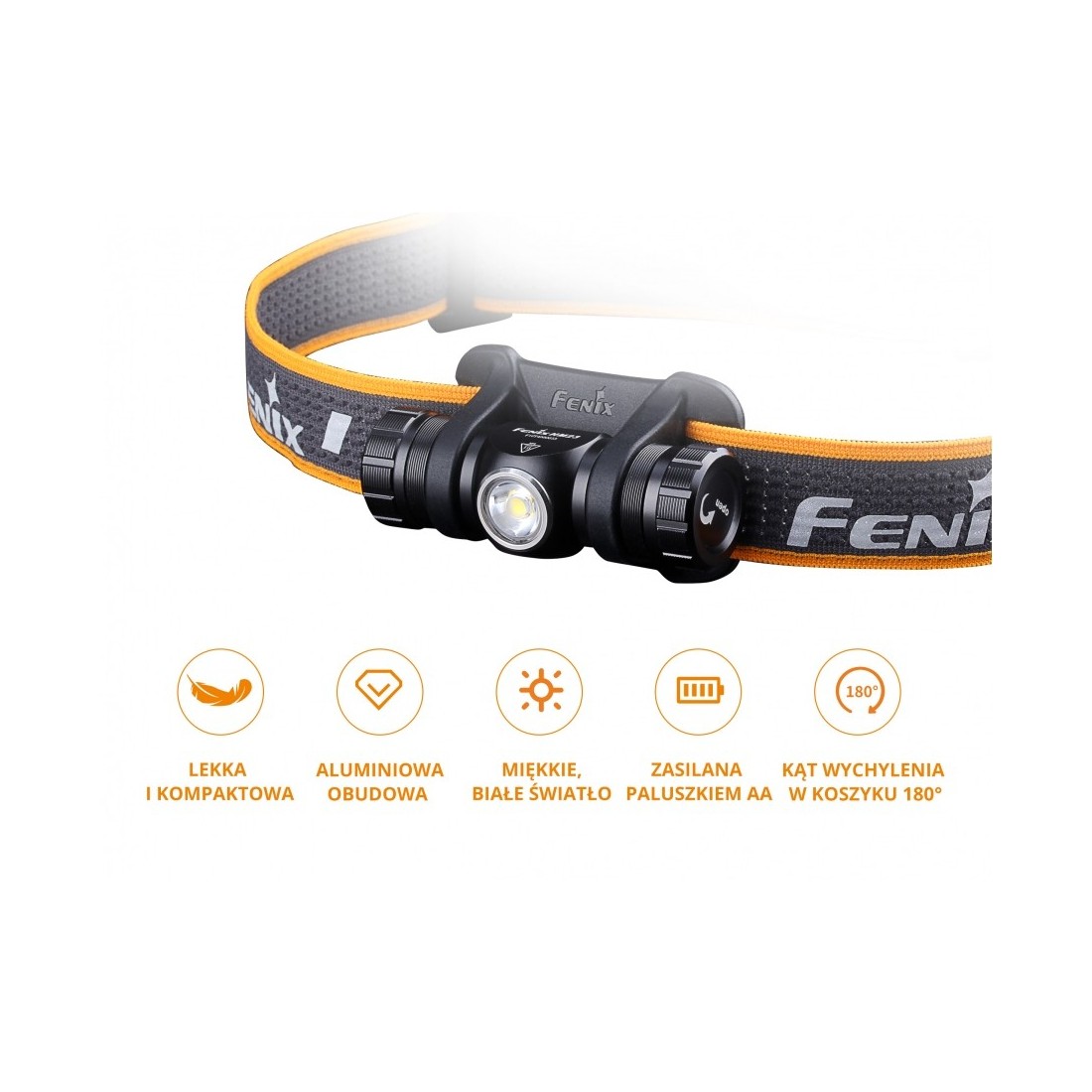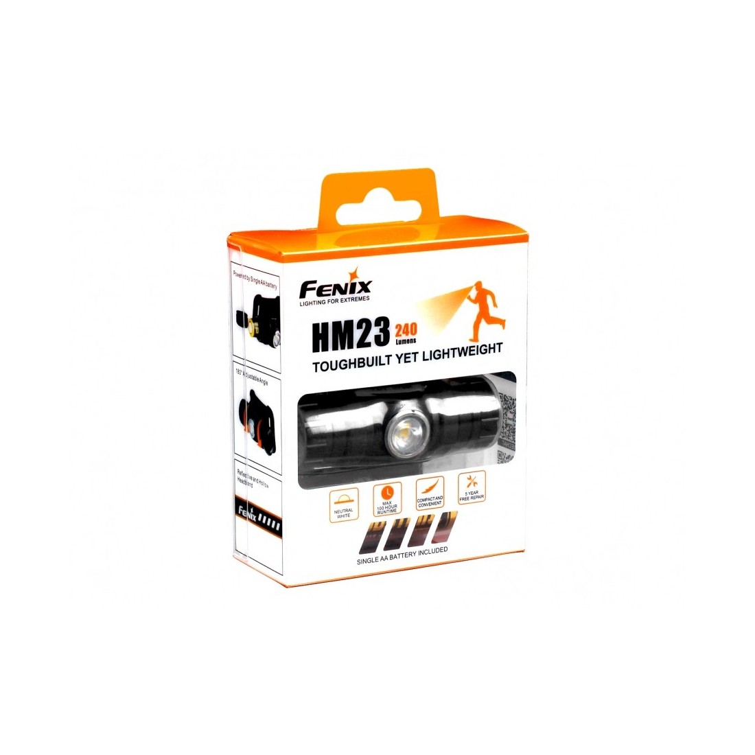 Fenix HM23 to latarka czołowa ważącą zaledwie 43 g, o wydajnym strumieniu światła 240 lumenów oraz powszechnie dostępnym zasilaniu w postacie baterii AA.