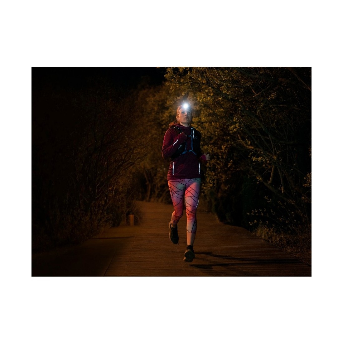 Wygodne przenoszenie latarki na głowie zapewnia regulowana, elastyczna opaska ze wstawkami odblaskowymi, zwiększającymi naszą widoczność i bezpieczeństwo podczas poruszania się nocą po drodze lub szlaku.