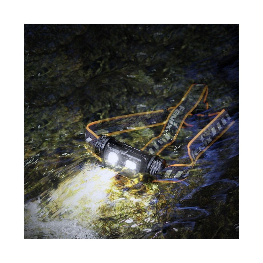 Czołówka Fenix HM60R jest wyposażona w zabezpieczenie przed odwróconą polaryzacją, chroniące przed nieprawidłową instalacją baterii. Producent zastosował także inteligentne zabezpieczenie przed przegrzaniem, funkcję pamięci ostatniego trybu oraz ostrzeżenie o niskim poziomie akumulatora. Latarka cechuje się wysoką klasą ochrony IP68, co oznacza, że jest odporna na kurz, pył, mocny deszcz, a nawet pełne zanurzenie w wodzie (2 m) przez 4 godziny. Dlatego HM60R może być z powodzeniem wykorzystywana w każdych warunkach pogodowych i pracy w trudnym środowisku.