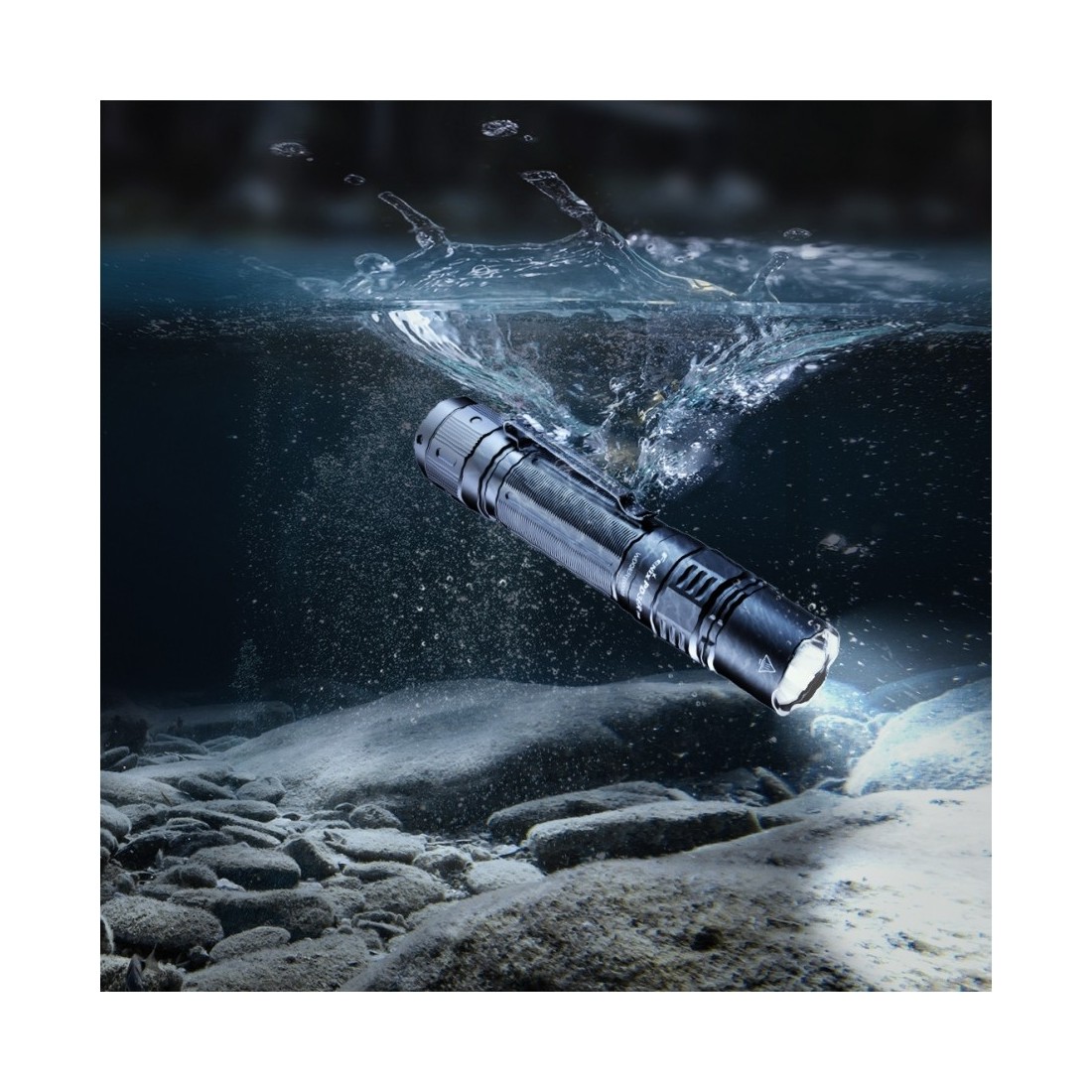 Wysoka klasa ochrony IP68 powoduje, że latarka jest odporna na całkowite zanurzenie w wodzie (30 minut na głębokości 2 m), pył i zabrudzenie oraz upadek.