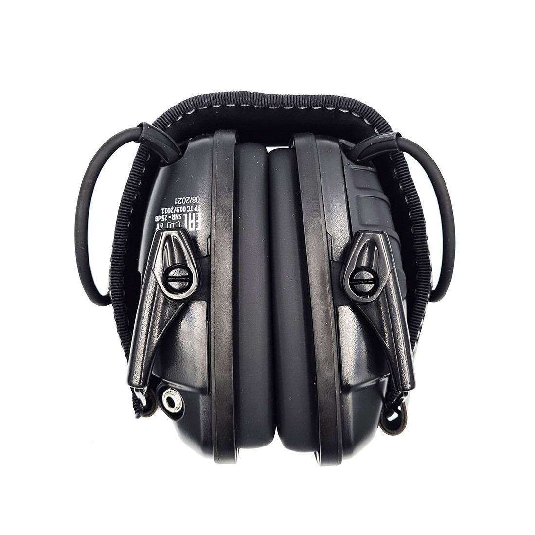 Wejście AUX znajdujące się w słuchawkach pozwoli na podłączenie się do zewnętrznych odtwarzaczy MP3 lub innych urządzeń auto pozwalając nam, na słuchanie ulubionej muzyki podczas pobytu na strzelnicy, w pracy przy maszynach lub po prostu w domu. Należy jednak pamiętać, że jest to sprzęt przeznaczony do ochrony słuchu w strzelectwie, także jakość dźwięku nie będzie taka sama jak w topowych słuchawkach do słuchania muzyki