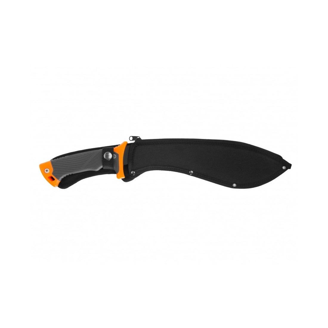 Jest fabrycznie naostrzona i gotowa do pracy. Wygodną rękojeść wykonano z twardego tworzywa, która posiada gumowany chwyt. W komplecie funkcjonalny pokrowiec, który umożliwa bezpieczne przenoszenie maczety.