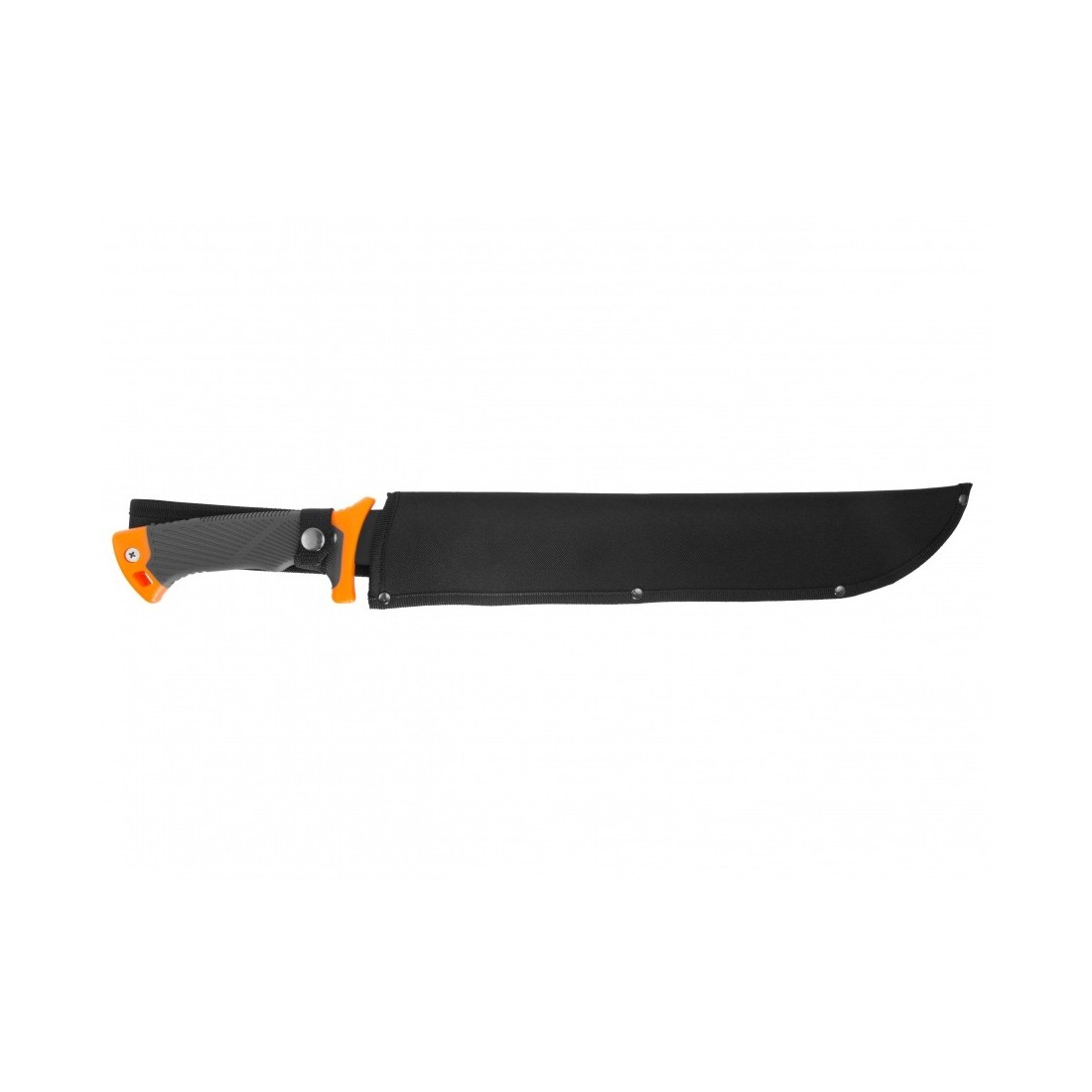 W komplecie funkcjonalny pokrowiec, który umożliwa bezpieczne przenoszenie maczety. Pokrowiec wykonany z nylonu posiada możliwość zamontowania na pasku.