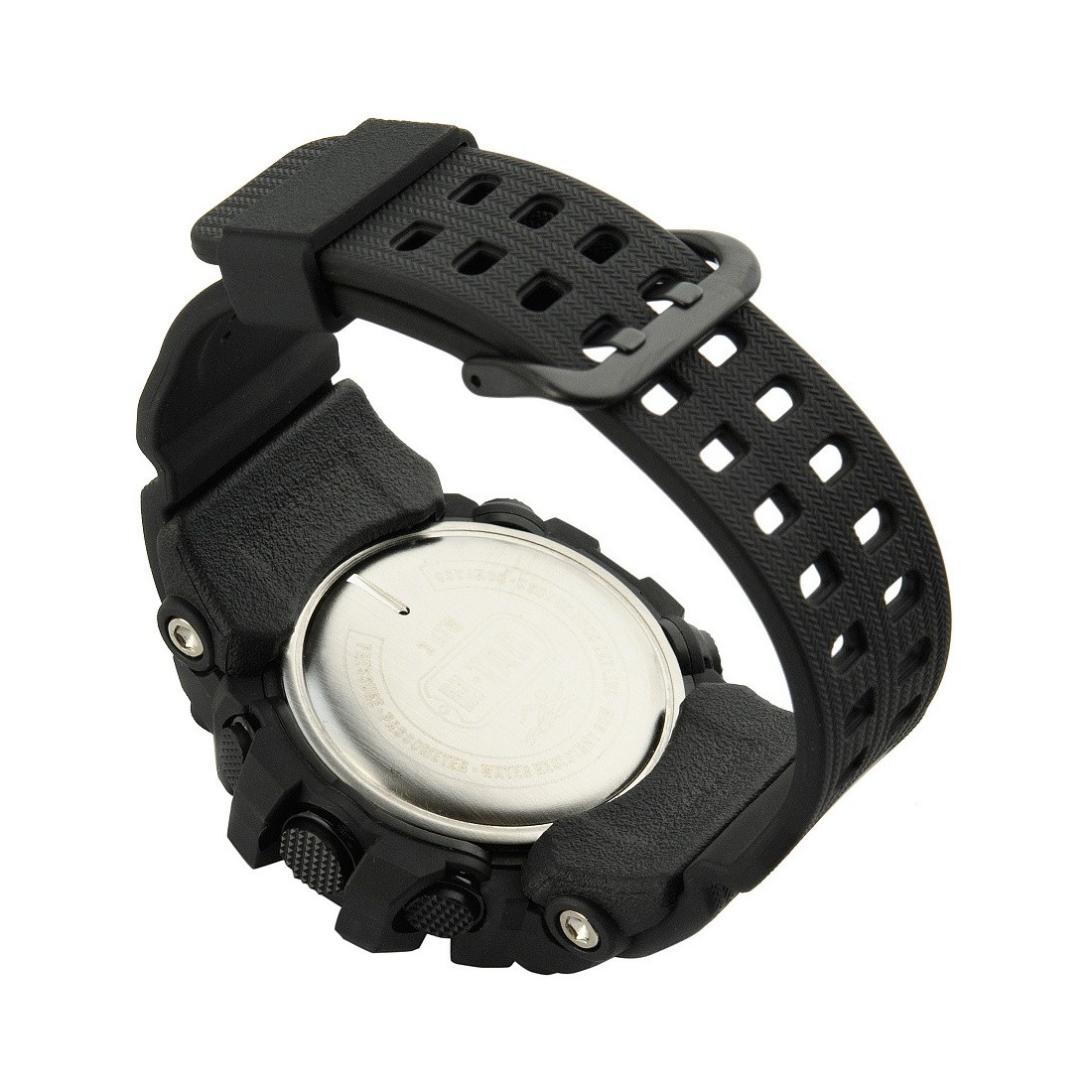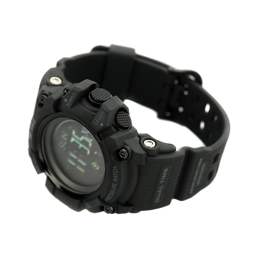 Taktyczny zegarek wielofunkcyjny wyposażony został w wytrzymałą obudowę wykonaną z poliwęglanu oraz bezel z wytrzymałej stali nierdzewnej.