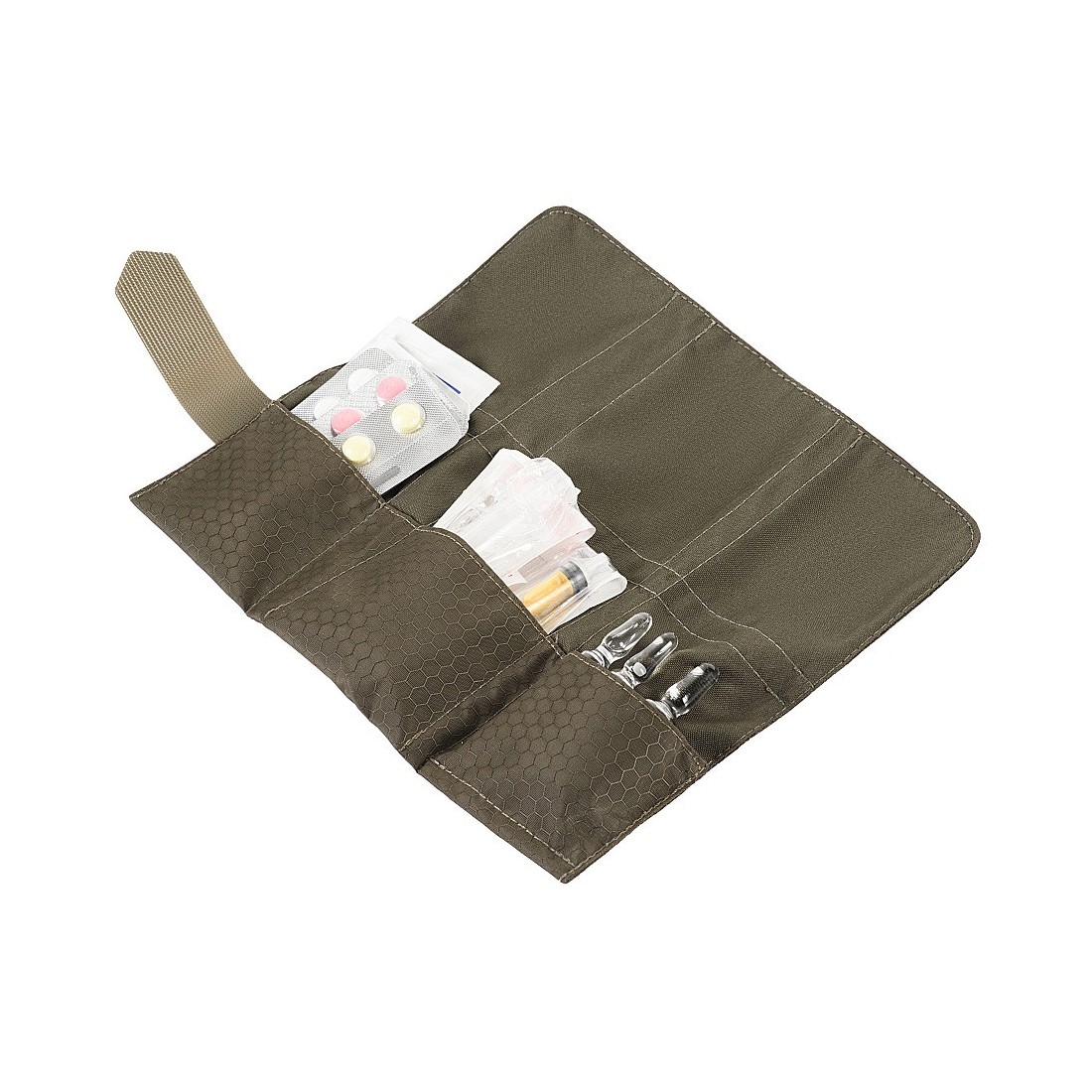 City Med Pouch posiada trzy komory do przewożenia indywidualnego zestawu medycznego: tabletek, plastrów, środków hemostatycznych, niewielkiej ilości opatrunków i innych.