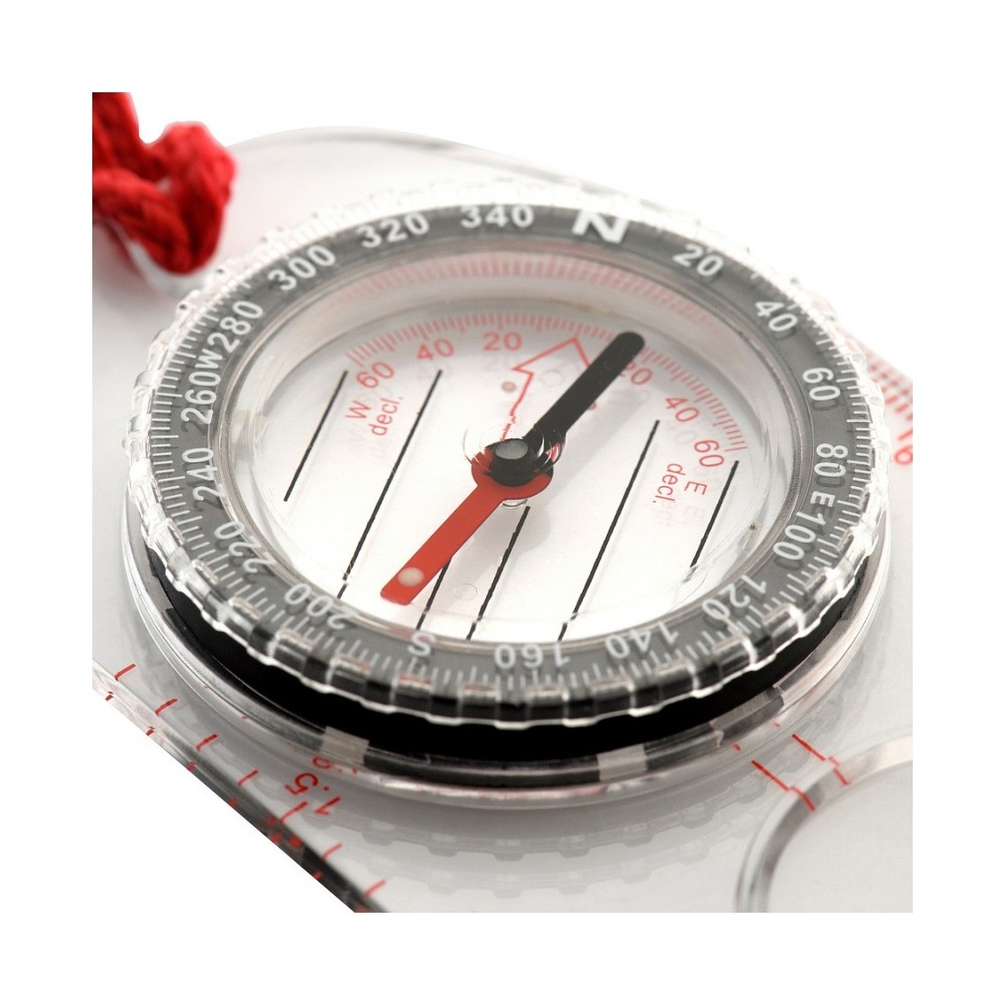 Klasyczny kompas mapowy. Przezroczysty korpus umożliwia odczyt informacji bezpośrednio na mapie.