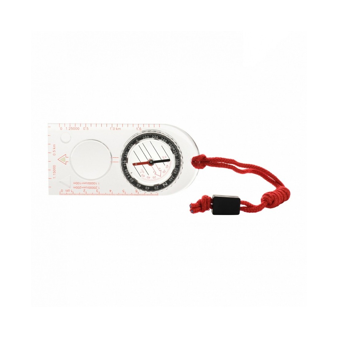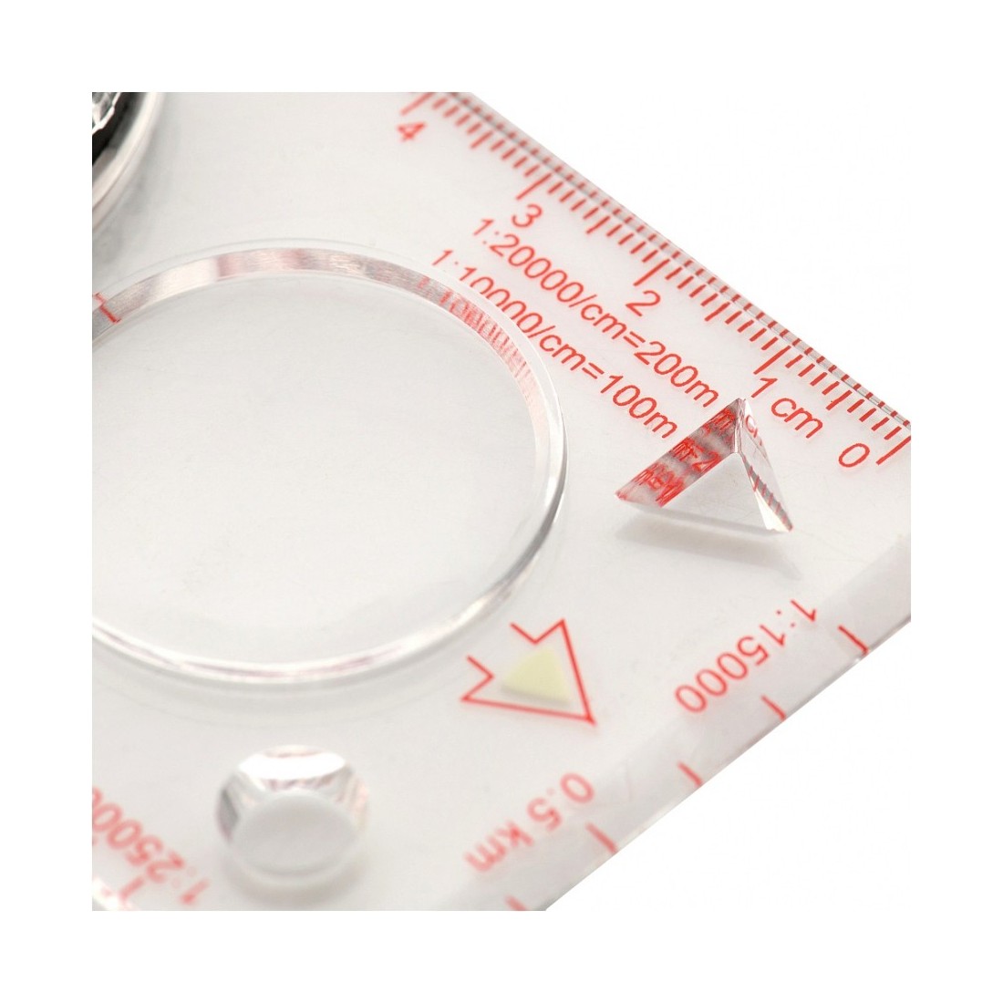 Posiada linijkę do obliczania odległości na mapie w skali 1:25 000 lub 1:50 000, szkło powiększające. W naszym przypadku jest to nie tylko kompas magnetyczny, ale także płynny.