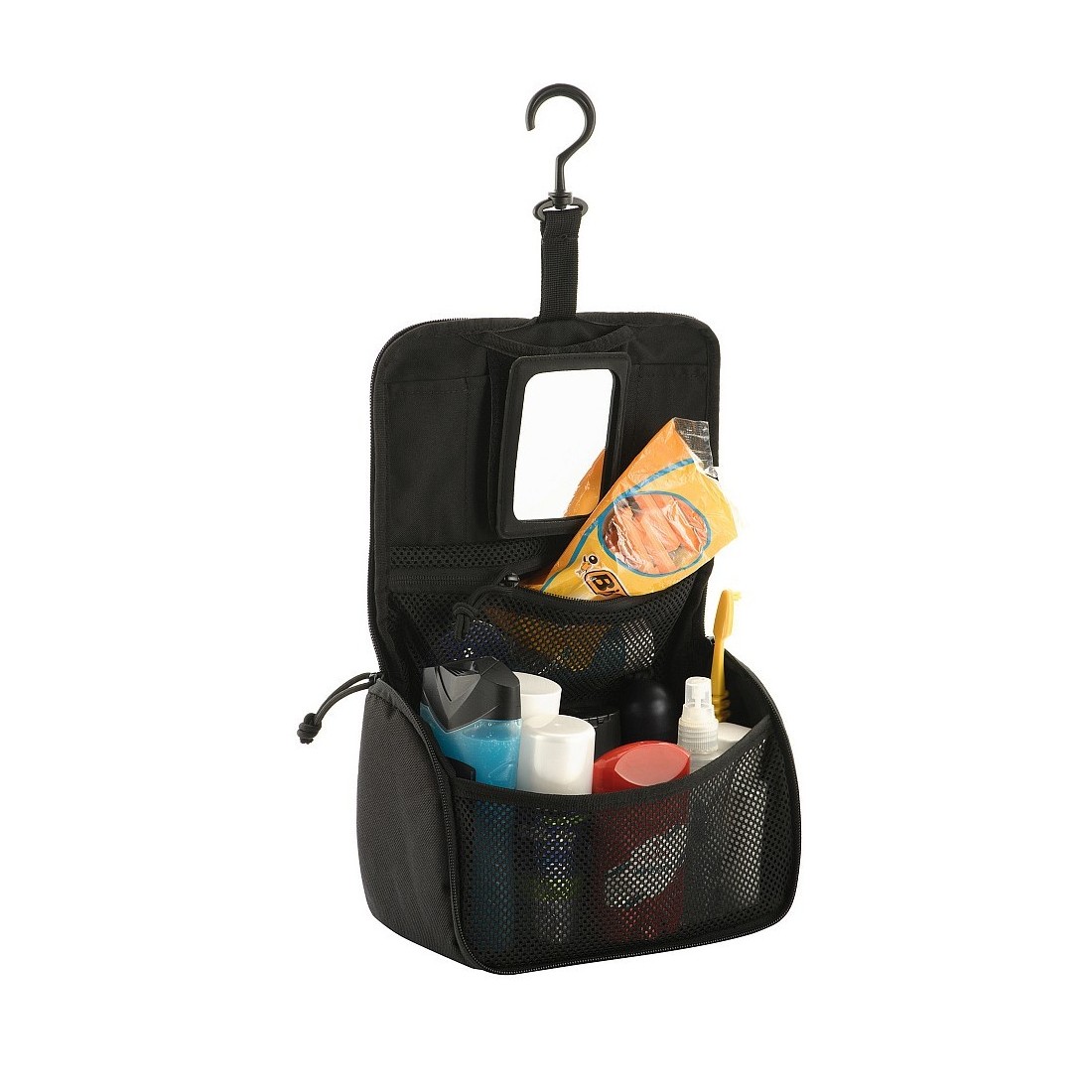 Kosmetyczka posiada stalowy haczyk do zawieszania pod prysznicem, w namiotach, na drzewach, rurach, meblach lub lustrze.