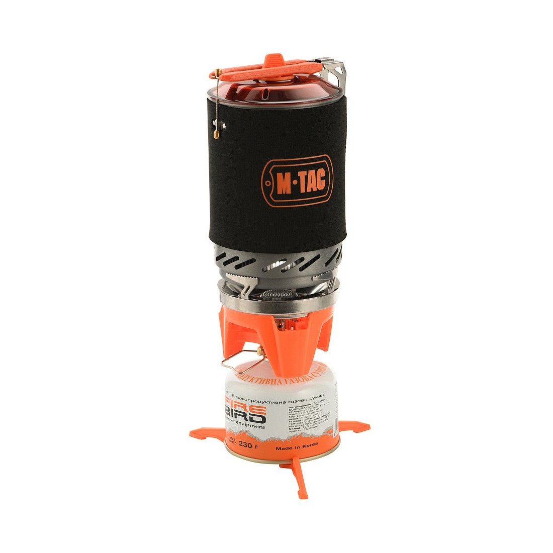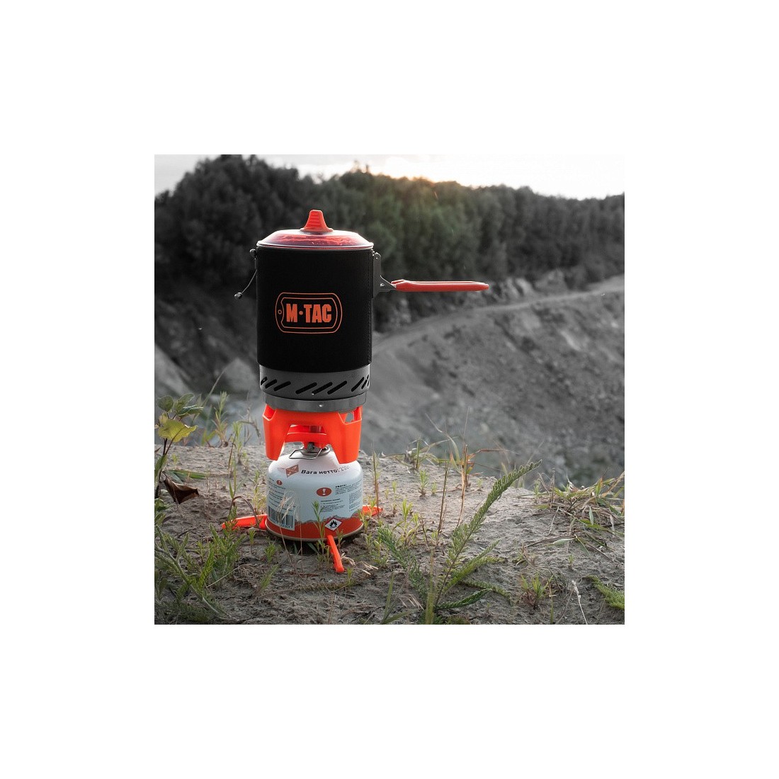 Turystyczny system do gotowania M-TAC. Naczynie do gotowania działa zgodnie z zasadą konwekcji, pozwalającej zmniejszyć zużycie gazu i czas nagrzewania.