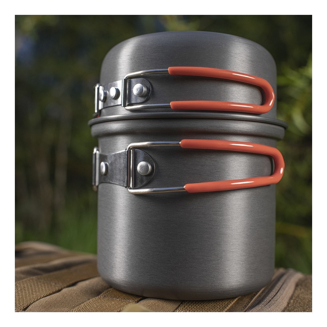 Dwuczęściowa menażka wykonana przeznaczona jest do gotowania w ternie. Wykonana została z lekkiego. anodowanego stopu aluminium.