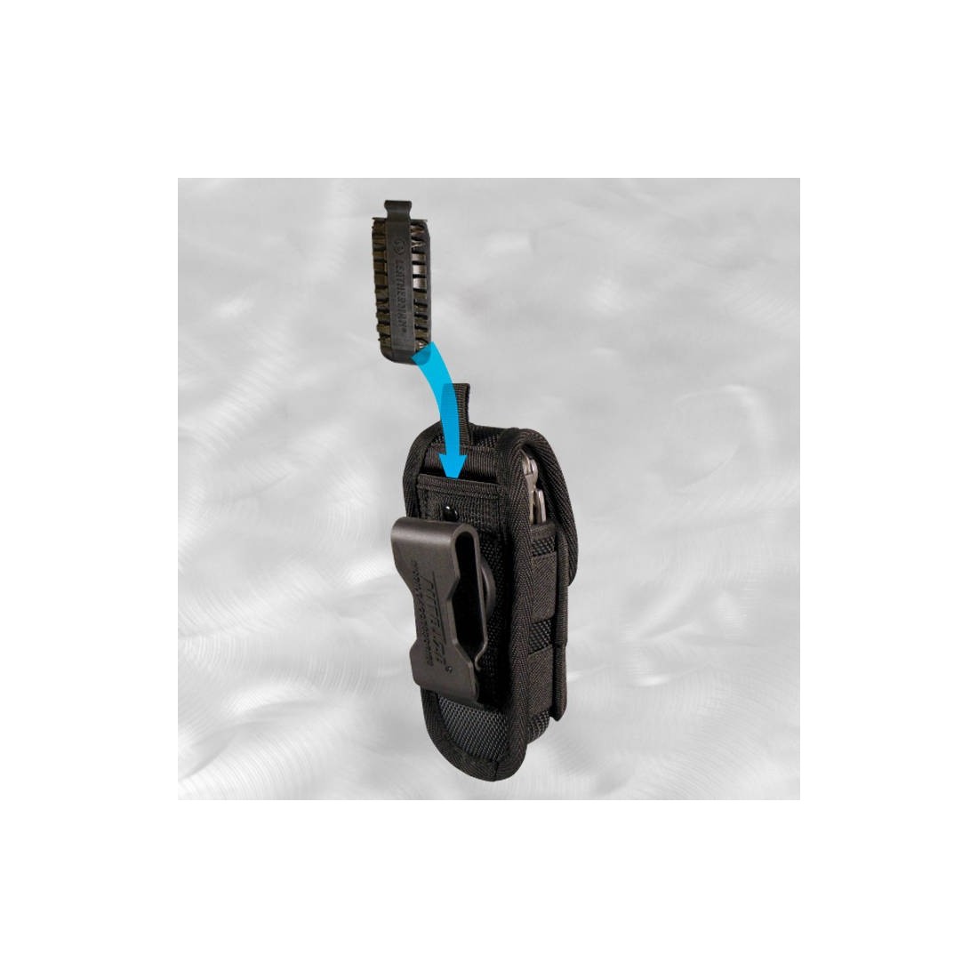 Elastyczne ściągacze sprawiają, że pokrowiec pasuje do większości tool'i i nóż składanych. Dzięki obrotowej klamrze możesz używać pokrowca pod dowolnym kątem.