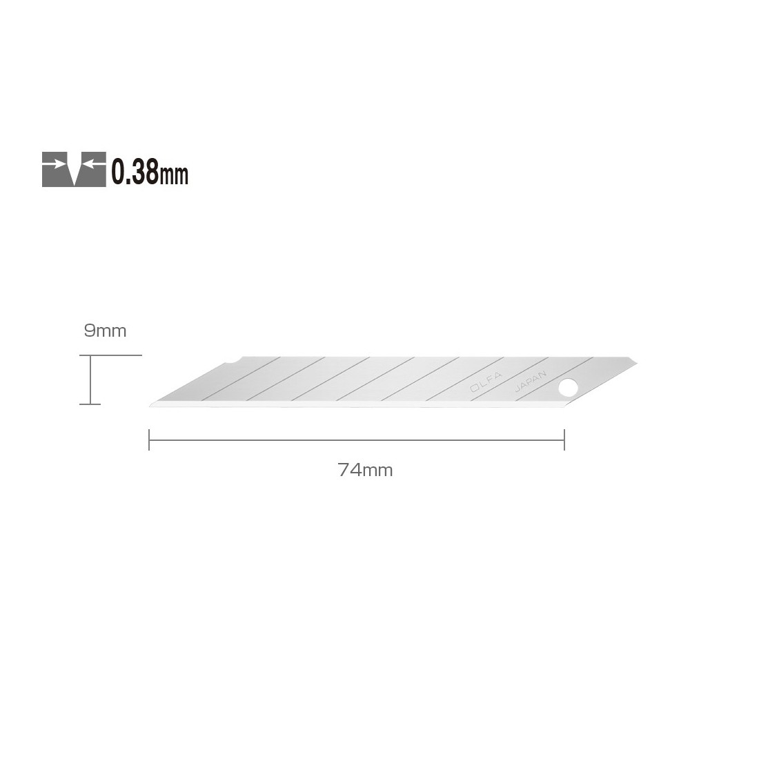 Grubość ostrza 0,38mm, długość krawędzi tnącej 72mm, 9 segmentów roboczych.
