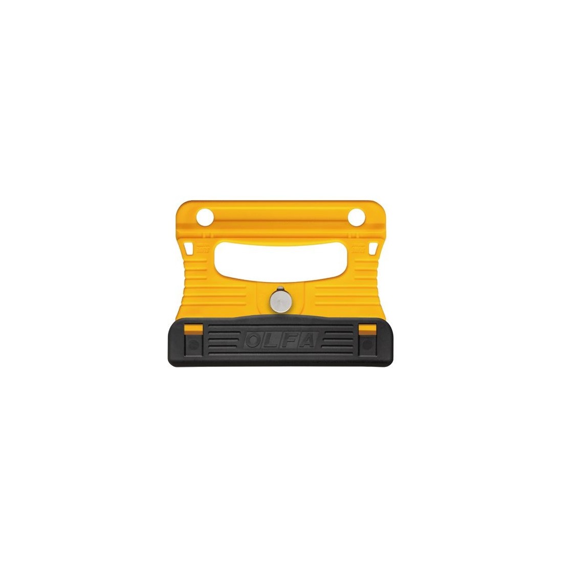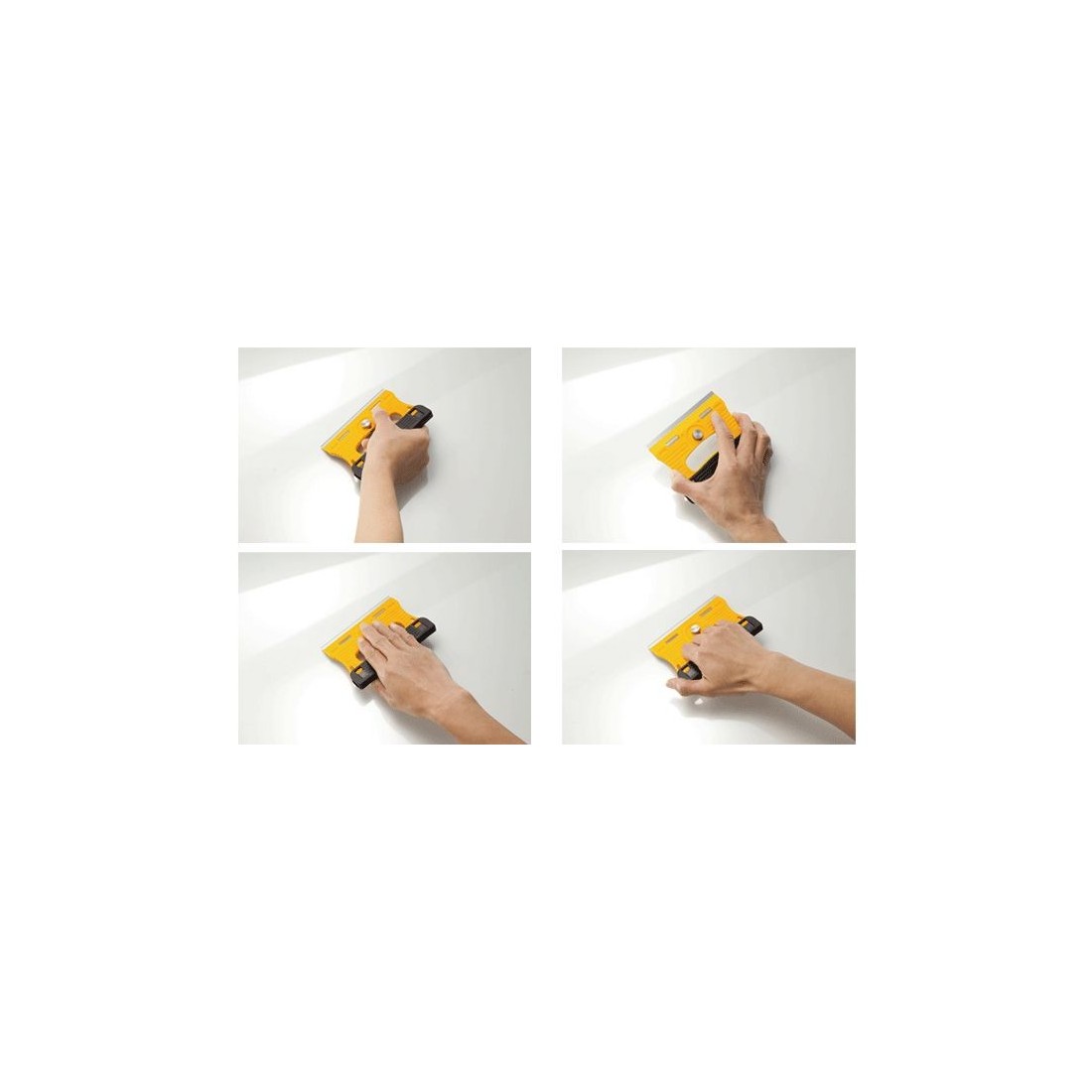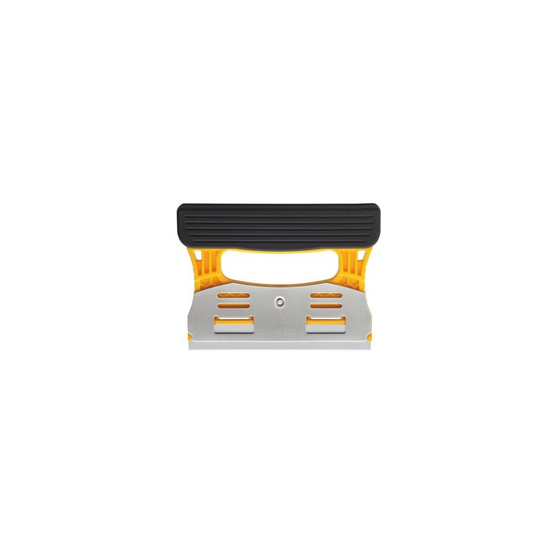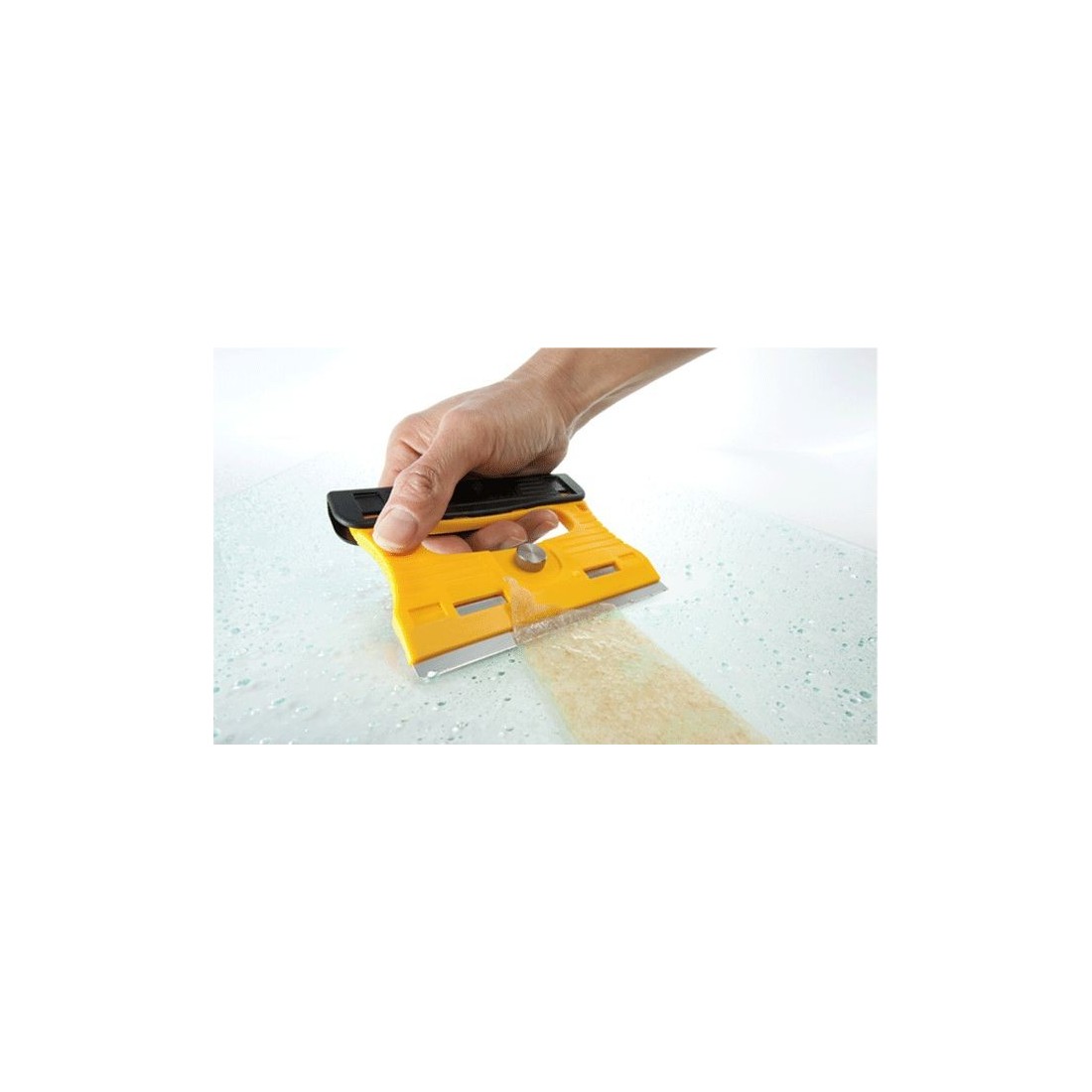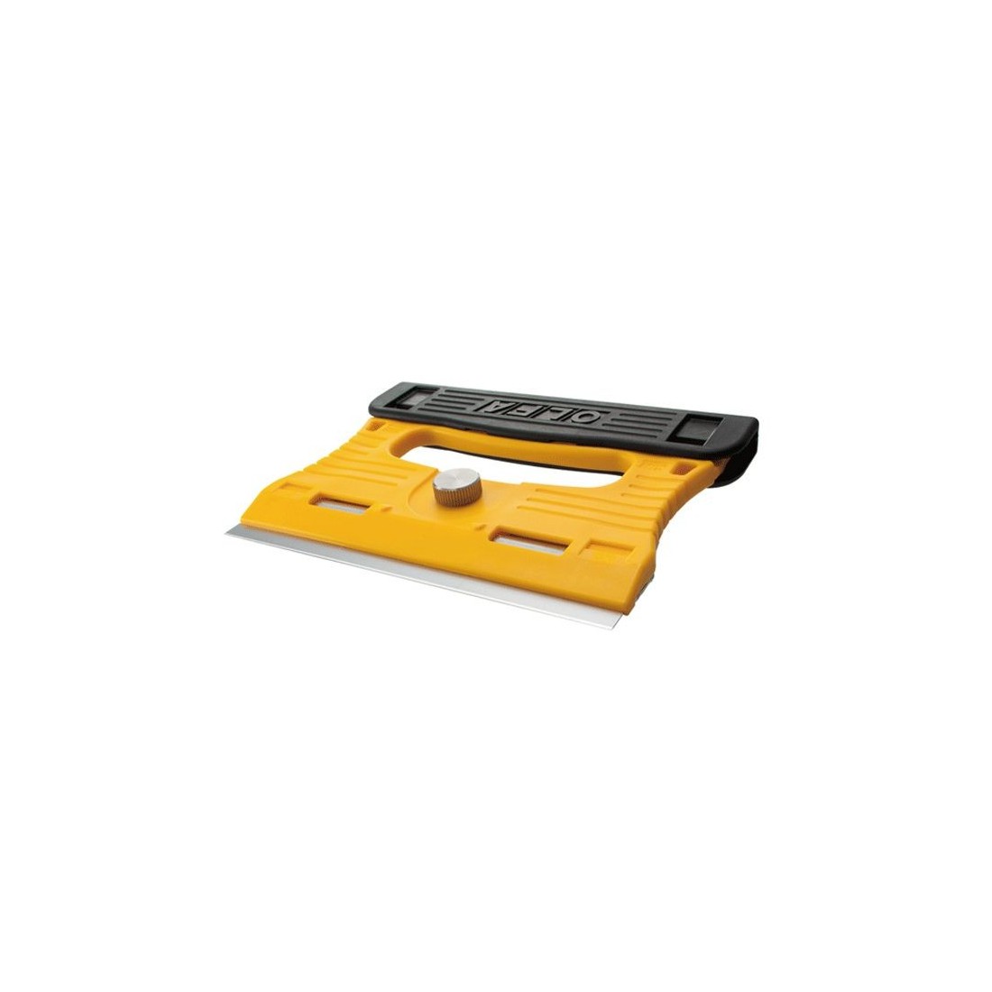 Rowkowanie na żółtej powierzchni uchwytu i czarnej osłonie ostrza pomagają znaleźć pewny i wygodny sposób trzymania narzędzia. Skrobak jest bardzo lekki, waży tylko 115 gramów