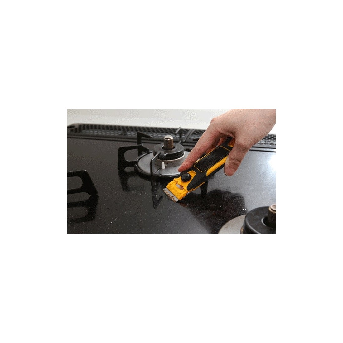 Uchwyt skrobaka jest tak szeroki jak wymienne, nierdzewne ostrze. Dzięki temu pozwala oczyścić wąskie miejsca, narożniki i zakrzywione powierzchnie. Może okazać się z również bardzo użyteczny w warunkach domowych, np. do czyszczenia płyt ceramicznych, szyb kominkowych itp.