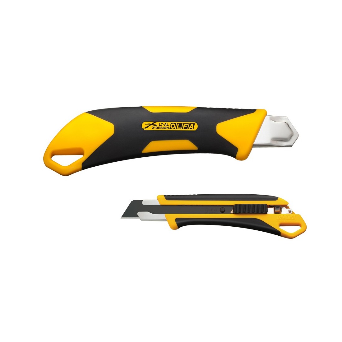 Wygodna rękojeść formowana metodą dwukomponentowego wtrysku wykonana jest z antypoślizgowego elastomeru wzmocnionego polipropylenem. W modelu L7-AL automatyczna blokada ostrza unieruchamia je w stałych odstępach wynikających z nacięć w prowadnicy. Pomiędzy nimi ostrze nie ulega zablokowaniu.