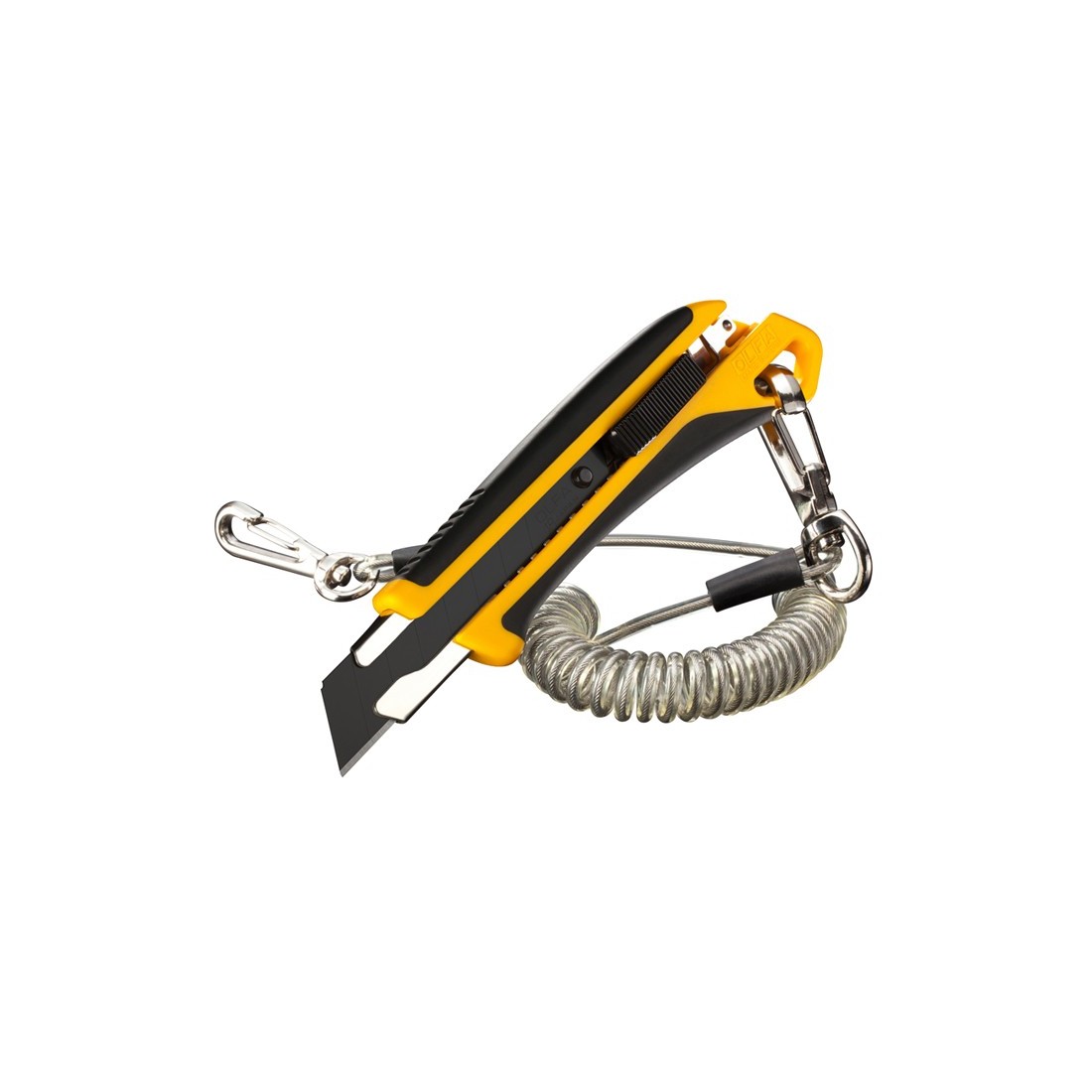 Nowy nóż segmentowy z ostrzem 18mm w tylnej części uchwytu ma duży otwór do zamocowania linki bezpieczeństwa - zapobiegającej upadkowi narzędzia lub jego zagubieniu, kompatybilny z różnymi metalowymi uchwytami, np. typu karabinek.