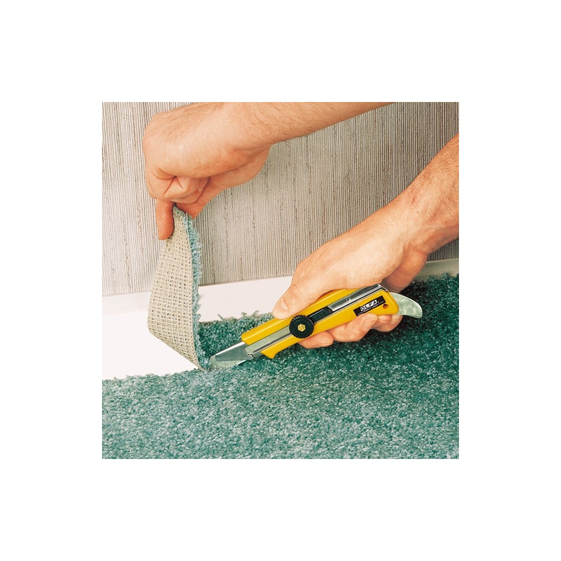 Nóż segmentowy na ostrza o szerokości 18mm, zaprojektowany specjalnie do cięcia dywanowych wykładzin podłogowych.