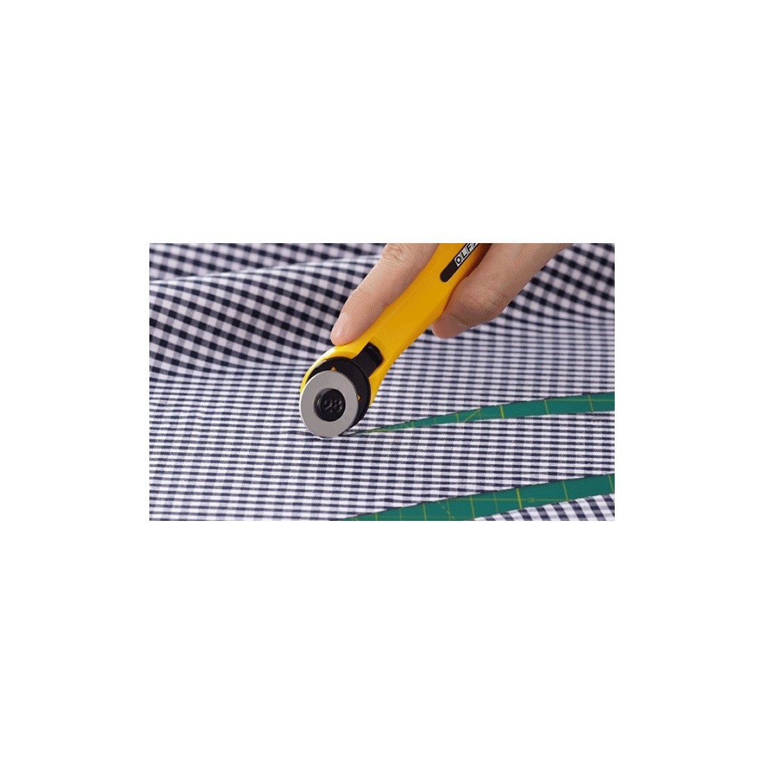 Cięty materiał cały czas leży płasko na macie, można więc na nim położyć wykrój, szablon lub linijkę i ciąć wzdłuż nich.