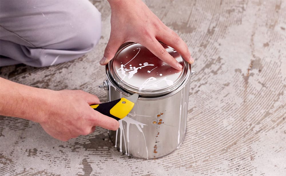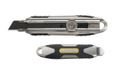 Wbudowana metalowa płetwa świetnie sprawdza się przy otwieraniu puszek z farbą i robieniu linii w kartonowych pudłach.