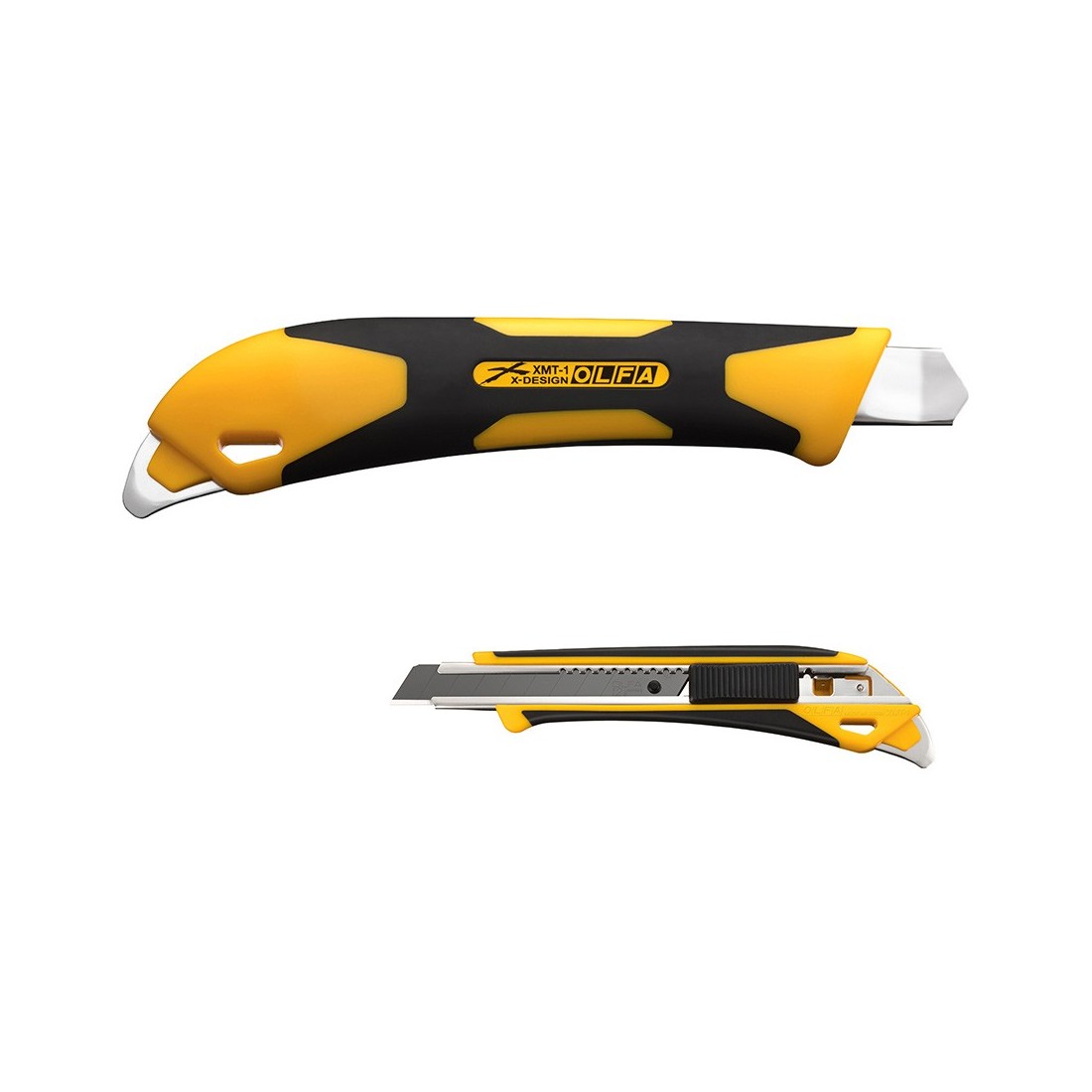 Uchwyt nowego modelu noża segmentowego XMT-1 utrzymany w czarno-żółtej stylistyce serii X-DESIGN, wykonany z elastomeru i wzmocnionego włóknem szklanym polipropylenu, zapewnia maksymalną wygodę uchwytu.