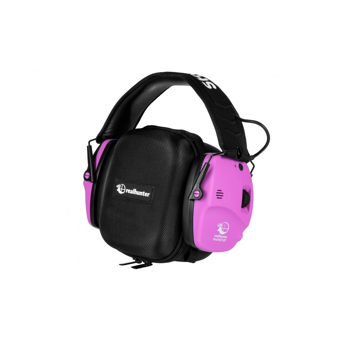 RealHunter Active ProSHOT BT różowe to nowa generacja aktywnych ochronników słuchu o wartości tłumienia SNR 27 dB, w których zastosowano moduł Bluetooth oraz port minijack 3,5 mm pozwalające na prowadzenie rozmów telefonicznych, słuchanie muzyki oraz podłączanie dodatkowych urządzeń.