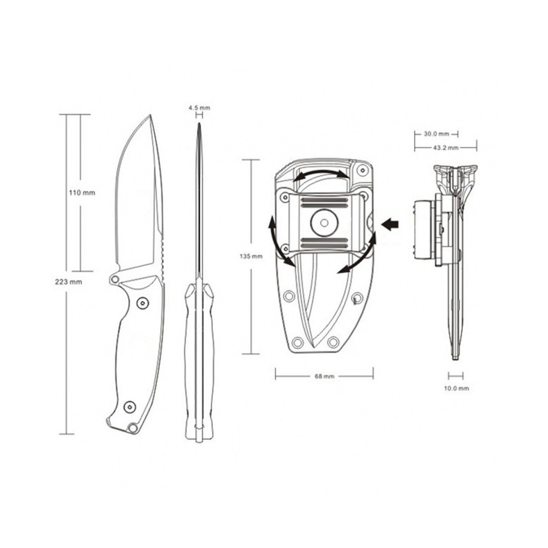 Producent wraz z nożem dostarcza pochewkę wykonaną z plastiku, którą dzięki klipsowi możemy przypiąć do naszego oporządzenia czy też paska. Dzięki eleganckiemu opakowaniu nóż może być idealną propozycją na prezent.