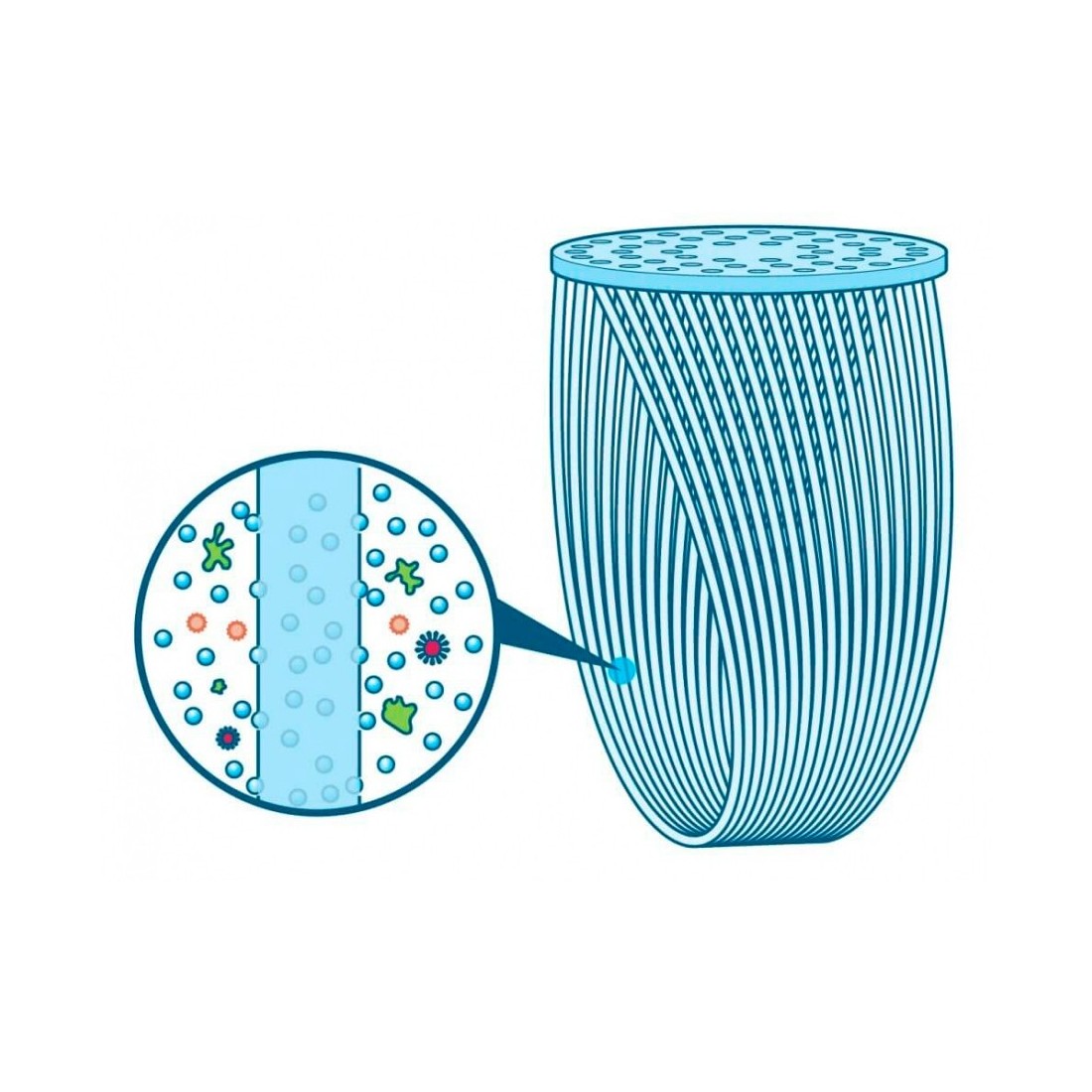 We wnętrzu filtra znajduje się sieć micro- kanalików w kształcie litery „U”, w których zatrzymywane są cząstki i zanieczyszczenia o wielkości powyżej 0,1 mikrona (micrometra). Dla przykładu bakterie pałeczki okrężnicy mają wielkość 0,8 mikrona. Dzięki tak zaawansowanej i dokładnej filtracji Sawyer Mini blokuje niebezpieczne dla zdrowia człowieka bakterie i pierwotniaki m.in. E.Coli, Giardii (Ogoniastek jelitowy), Vibrio Cholerea (Przecinkowiec cholery) oraz Salmonella Typhi (Salmonella).