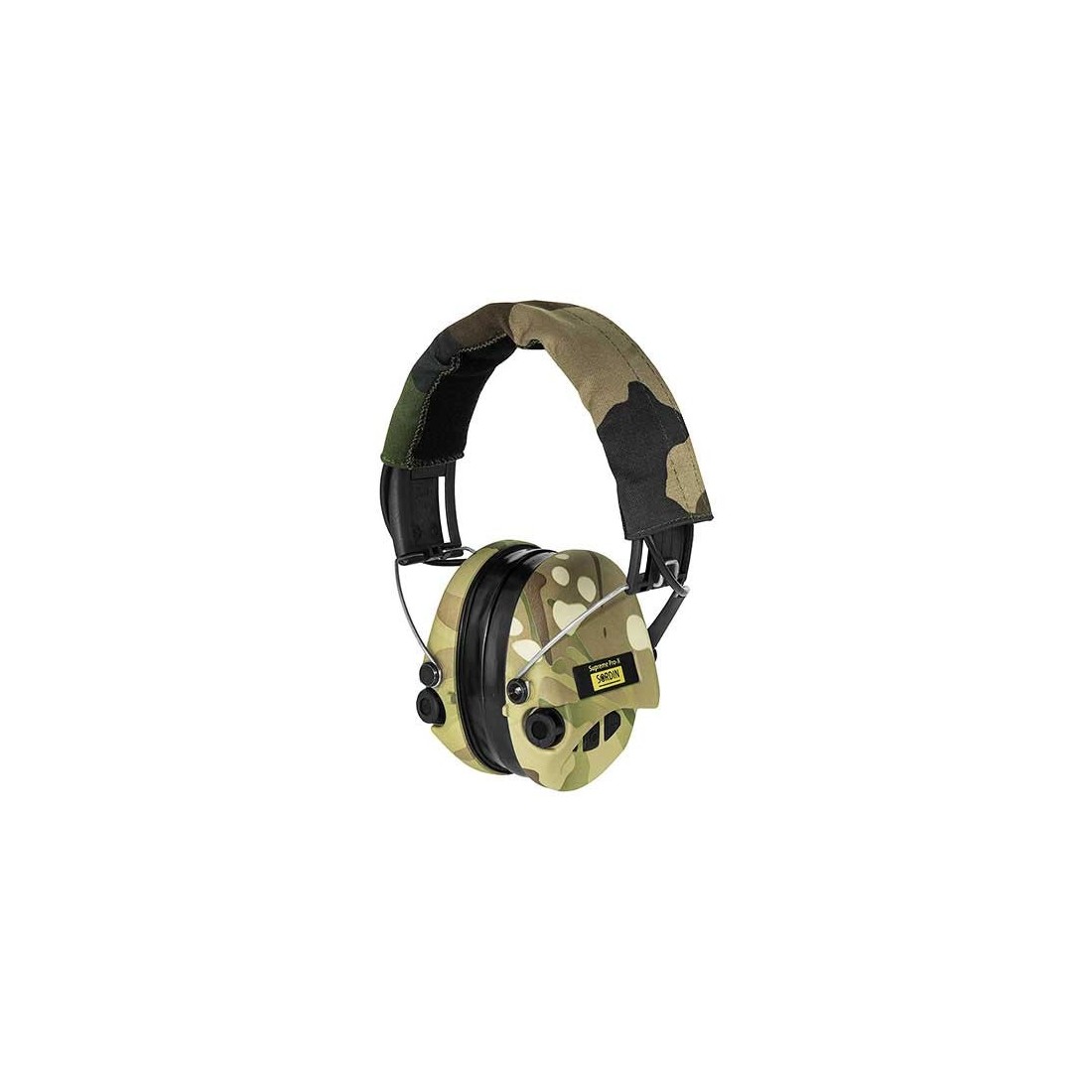 Wyprodukowane przez szwedzką firmę MSA Sordin słuchawki z aktywną ochroną słuchu Sordin Supreme Pro X LED, z opaską Camo, kubkami w kolorze camo oraz żelowymi wkładkami, oznaczone przez producenta kodem SOR75302-X-08-S.