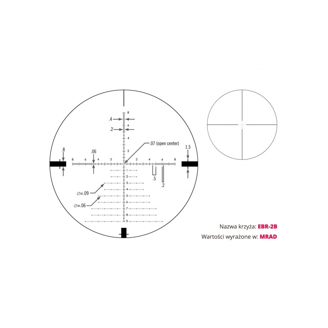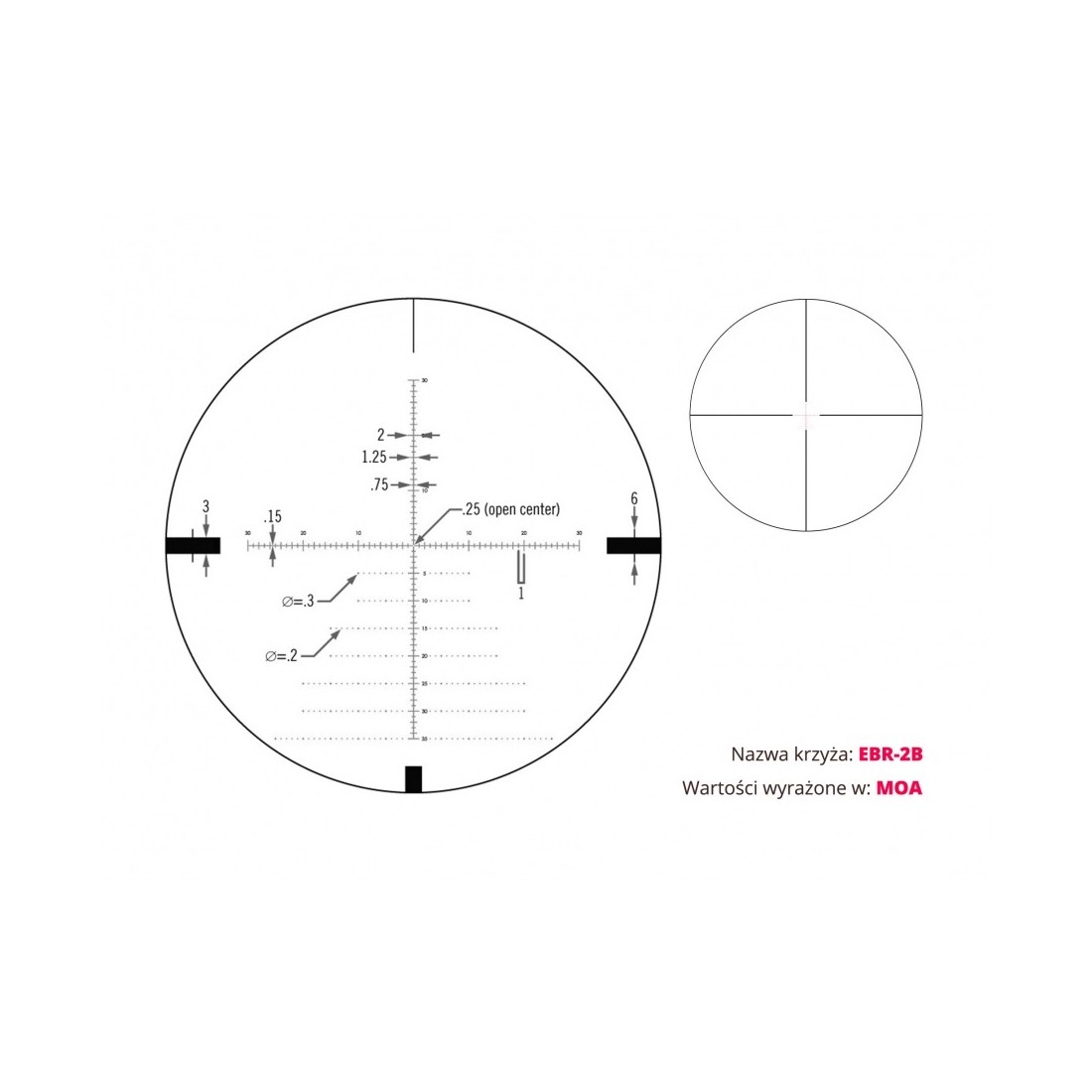 - Typ krzyża celowniczego (siatki) EBR-2C MOA EBR-2C MRAD