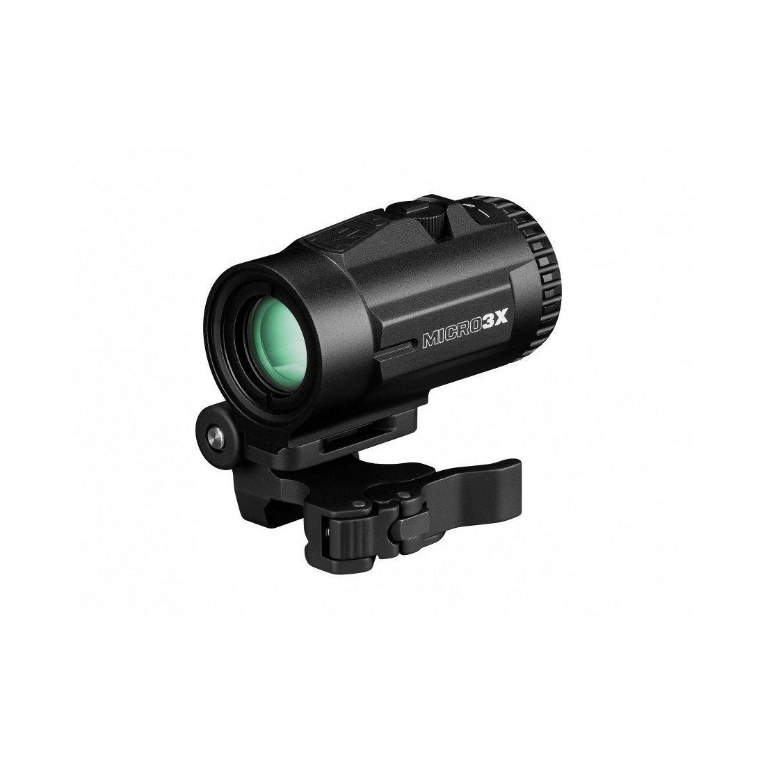 W odróżnieniu od innych modeli powiększalników dostępnych na rynku Vortex Micro 3X cechuje szerokim polem widzenia wynoszącym 12,7 na 100 m. Optyka ma regulację w pionie i poziomie oraz pierścień ostrości co pozwala na precyzyjne i centryczne ustawienie widzianego obrazu.