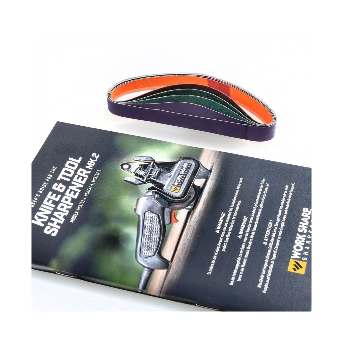 Profesjonalni twórcy noży do ostrzenia swoich wyrobów używają szlifierek pasowych oraz elastycznych pasów ściernych. Dzięki ostrzałce elektrycznej Work Sharp WSKTS MK.2 , możemy korzystać z tej profesjonalnej metody w domu i dzięki temu zadbać o perfekcyjną ostrość naszych narzędzi. Pasy ścierne pozwalają szybko i precyzyjnie wyostrzyć noża do fabrycznej ostrości, bez konieczności korzystania z usług drogich serwisów. W zależności od stanu krawędzi tnącej, do ostrzenia możemy używać pasów ściernych o 3 różnych gradacjach: 80, 220 i 6000 (w komplecie).